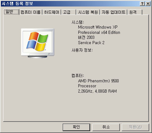 회사에서 쓰는 PC가 Pentium 4 3GHz인데, 하는 일이 '잡종'이라서 별의 별 프로그램과 여러 웹 사이트를 띄워 놓습니다. 그렇다보니 3시간만 지나면 작업이 불가능해질 정도로 속도가 느려져 업무 효율성을 위해 제 돈을 들여 PC를 바꿀 수 밖에 없었습니다. T_T