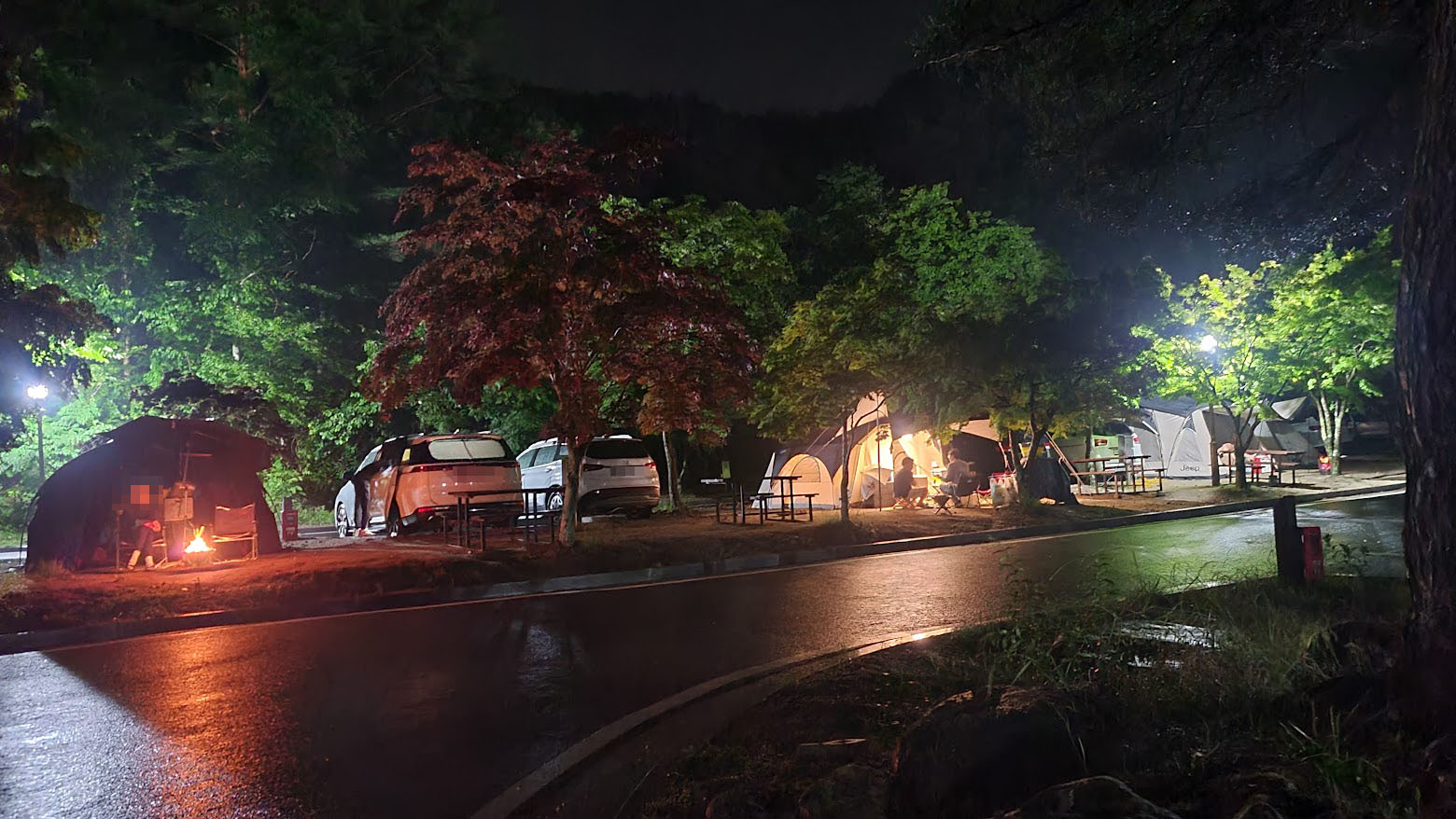 물론 우중 캠핑을 혐오하는 분들도 적지 않지만, 반대로 비오는 캠핑의 낭만(?)을 즐기는 분들도 계시기에 이렇게 비가 오는 와중에도 캠핑을 잘들 하는 분이 계십니다. 실제로 이번에 갔을 때도 잠시 소나기가 강하게 왔지만, 이 때문에 도망가는(?) 분들은 없었죠. 결국 생각하기 나름 + 준비하기 나름인 일입니다.