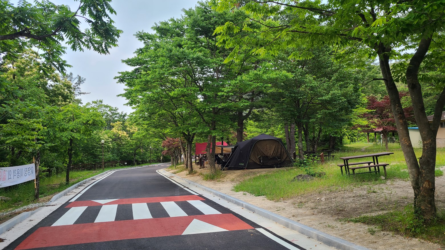 그래도 매년 조금씩 시설 개량은 진행하기는 합니다. 위 사진은 작년 5월에 찍은 사진이고, 아래는 올해 6월에 찍은 것입니다. 이전에는 블럭 도로였는데, 관리가 잘 되지 않아 덜컹거리고 난리가 아니었으나, 이제는 아스팔트로 깨끗하게 포장해 놓았습니다. 관리동을 새로 지으면서 샤워장과 개수대도 새로 만들기도 했으니 조금씩 편해지는 면은 있습니다. 전혀 안 나아지는 것은 사이트 자체 뿐입니다.T_T