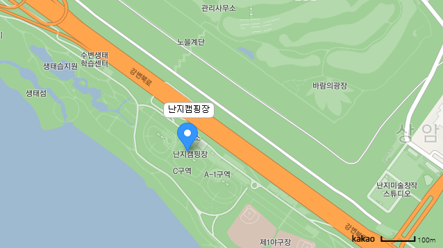 난지캠핑장의 입지는 그야말로 서울 거주민에게 있어서는 최적입니다. 아무리 서울 도로가 막힌다 한들 1시간 전후면 올 수 있는 거리이며, 길이 덜 막히는 시간이면 훨씬 짧은 시간에 올 수 있습니다. 서울 동쪽 끝에서 와야 하는 저도 25분이 걸렸습니다. 정말 가볍게 왔다 가볍게 정리하고 나올 수 있는 곳입니다. 그만큼 이동에 대한 부담이 적습니다.