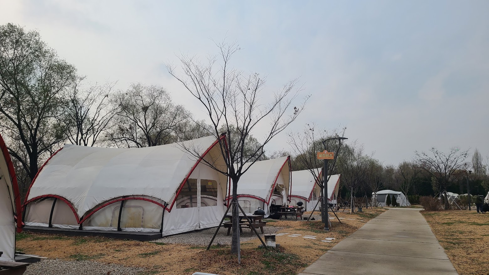 글램핑장도 몇 개 안 되지만 있습니다. 물론 글램핑이라고 써 놨지만 그렇다고 무슨 냉난방 완비에 식기류나 침구까지 싹 있을거라 생각하시면 안 되고, 텐트 없는 분들이 캠핑을 좀 덜 춥게 할 수 있구나... 정도라 보시면 됩니다.
