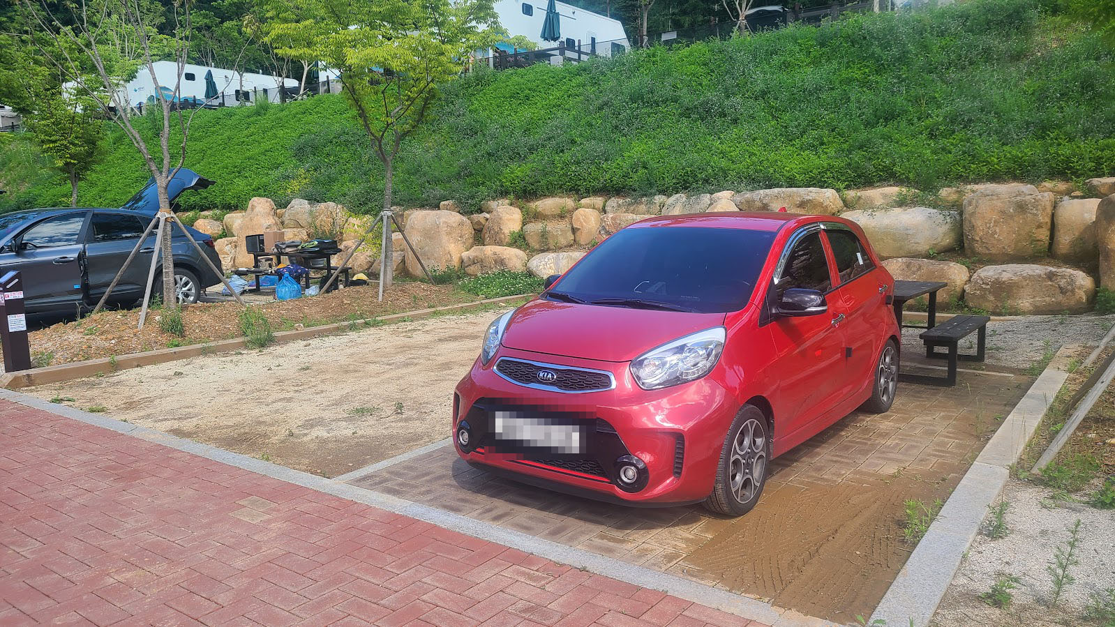 이렇게 캠핑장 도착 15분만에 다시 모든 짐을 싣고 개수대에 떠간 물을 아깝지만 싹 비우고, 화장실 한 번 들렸다 다시 집으로 가는 슬픈 귀로에 올랐습니다. 그나마 체크인은 했으니 노쇼 페널티만 피했다는 것에 안도해야 할 상황입니다.