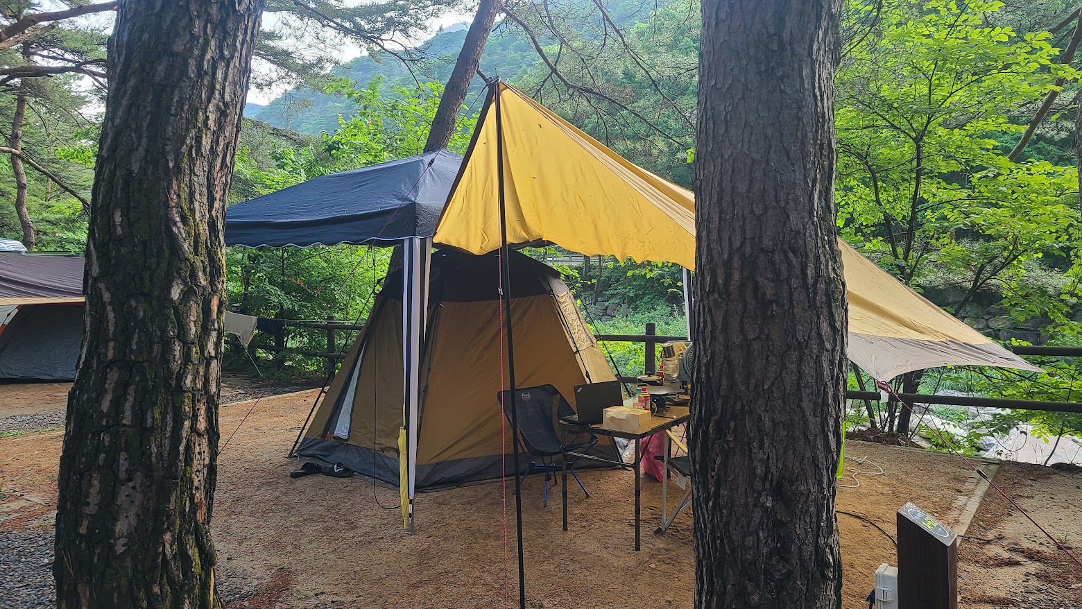 추신: 사실 덕주를 갔을 때 기억에 남는 것은 기습폭우입니다. 처음에 캠핑장 도착했을 때만 해도 햇볕이 쨍쨍에 비 예보도 없어서 그냥 타프만 쳤는데, 갑자기 하늘이 검어지더니 폭우가 내리기 시작했습니다. 바로 옆의 계곡은 대피명령이 떨어졌고, 야영장 철수 이야기까지 나올 뻔 했습니다. 다행히 비가 1시간 뒤에 그치긴 했습니다만, 텐트 안에 비가 들어오는 사태까지 벌어져 귀찮아서 안 쳤던 캐노피까지 우중에 치느라 난리를 벌어야 했습니다.