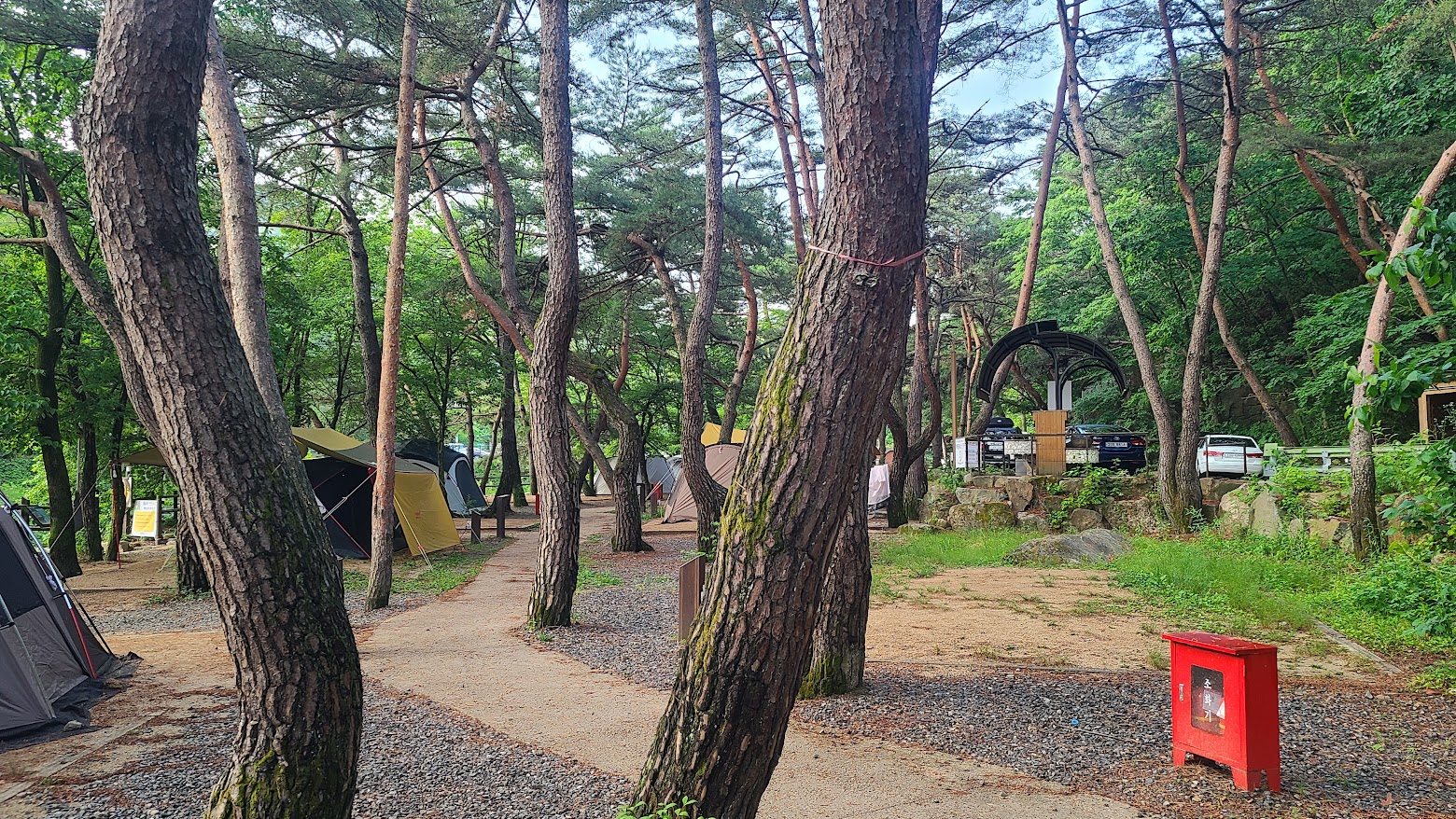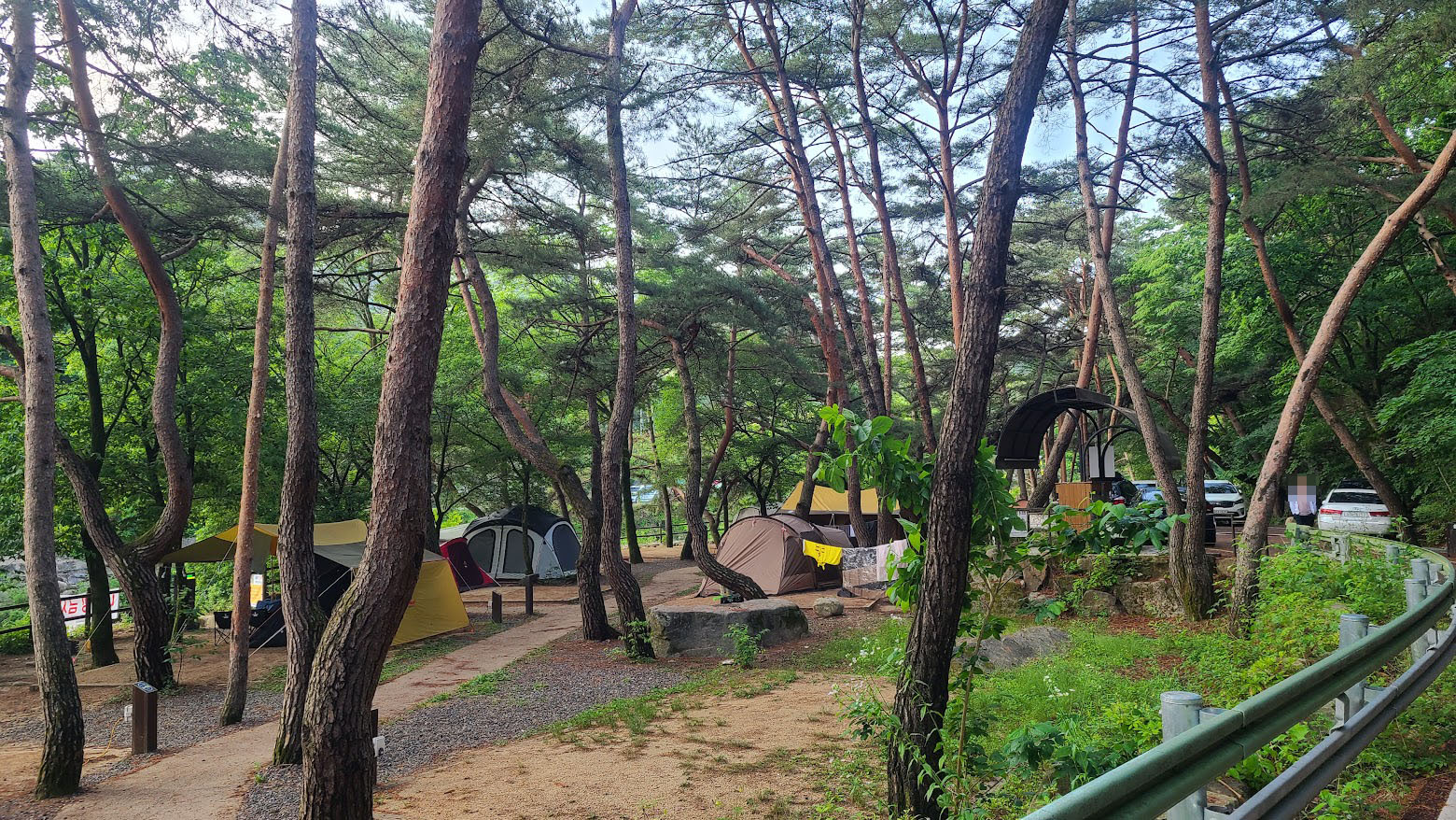 대신 그만큼 숲속에서의 캠핑 느낌은 제대로 즐길 수 있습니다. 소나무 그늘이 어느 정도 햇볕을 막아주기에 여름에도 상대적으로는 덜 덥습니다. 나무에 타프를 묶거나 해먹을 거는 것 같은 너무나 잘 정돈된 캠핑장에서 하기 어려운 일도 할 수 있습니다. 계절에 따라서는 오히려 이게 NG지만, 여름에는 그늘이 있다는 것 만으로도 정말 행복해집니다. 밖에서 고기를 구워먹는 목적이 아닌 조용한 힐링을 원하신다면 운치 있는 캠핑을 만끽할 수 있을 것입니다.