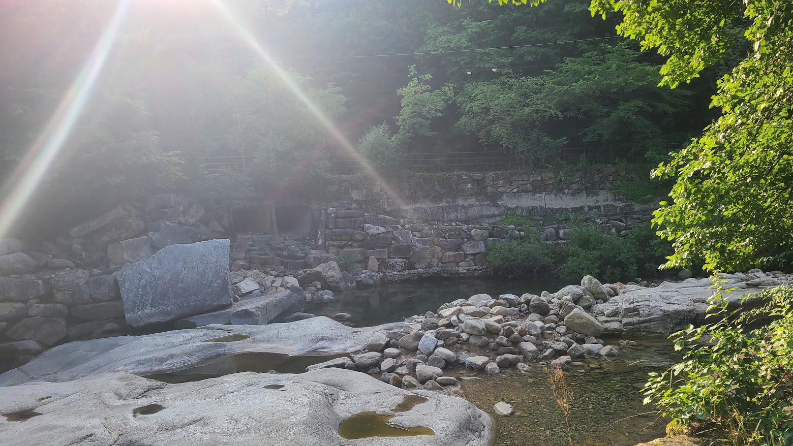 이렇게 냇가도 있어서 여름에 물가에서 놀기도 좋습니다. 계곡에서 물소리가 크게 들리지는 않아서 물소리를 들으며 자는 재미는 좀 약하지만, 가족 단위로 캠핑오신 분들이라면 매력이 하나 더 있을 것입니다.