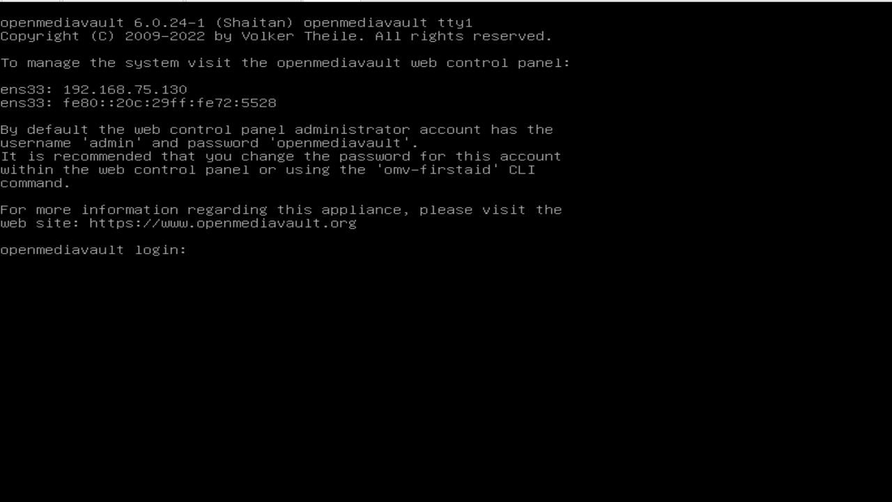 예. 이것까지 보셨다면 이제 OMV의 설치는 완전히 끝나고 정상적으로 부팅까지 확인한 것이 됩니다. 위에 보시면 IP 주소가 있고 이제 이 주소로 웹 브라우저를 통하여 환경 설정이 가능합니다. 이 부분은 다음 2부에서 적도록 하겠습니다. 그러면 휘리릭~