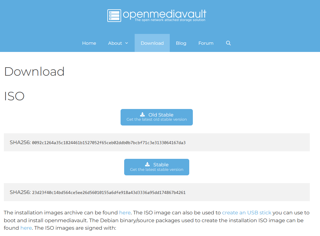 이러한 준비가 끝나면 아래 링크에서 OpenMediaVault의 ISO를 다운로드합니다. 2023년 3월 21일 기준 최신 안정 버전은 6.0.24입니다만, 5대 버전의 안정 버전 역시 제공합니다.