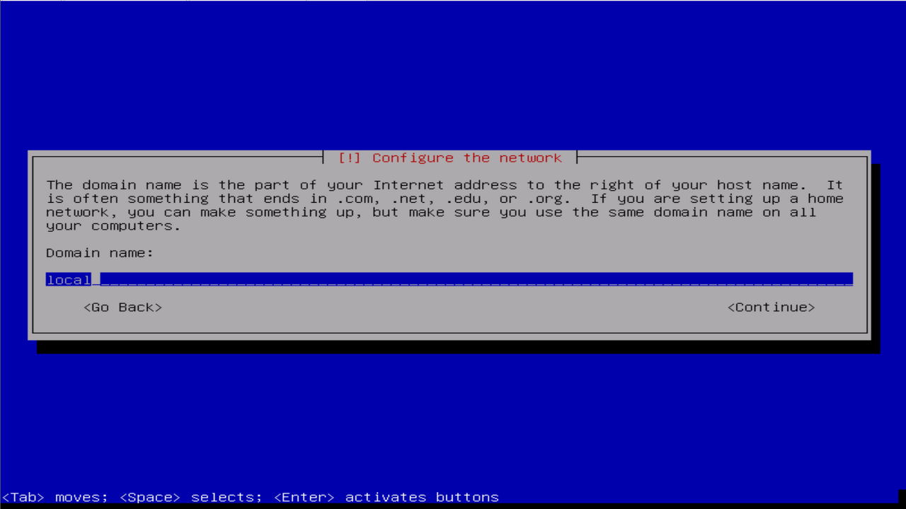 도메인 명칭은 그냥 'local'이 기본값이라 그냥 'Continue'를 눌러 줍니다.