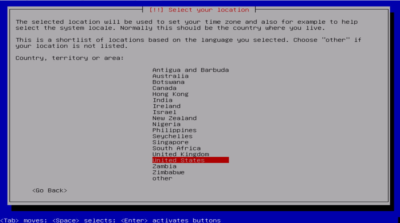 이 부분이 끝나면 시간 설정을 위한 국가 설정이 나오는데, 사실 미국으로 국가 설정을 했으니 여기서 우리나라는 안 나옵니다. 어차피 관리자에서 이 부분은 따로 설정할 것이라 그냥 아무거나 선택하시면 됩니다.^^