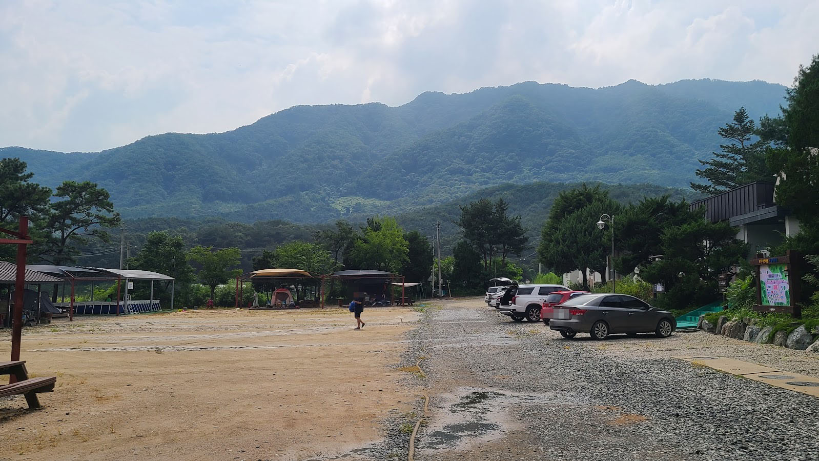 일단 주변으로 캠핑 사이트가 위치하고 운동장은 주차장 겸 운동장으로 쓰는거라 많이들 차에 운동할 것을 들고와 배드민턴이나 캐치볼 등을 합니다. 어른들만 오면야 뭐 그냥 빈 땅입니다만.^^