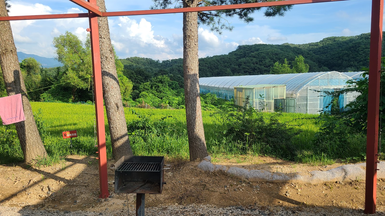 그러면 이 캠핑장은 완벽할까요? 그렇지는 않습니다. 모든 캠핑장은 다 단점이 있는 법이죠. 서울캠핑장의 공통적인 단점은 이 한 장의 사진으로 설명이 됩니다. 예. 주변에 볼 거리가 없습니다. 어디까지나 폐교 부지와 시설을 활용한 것이기에 주변에 있는 것은 다 이런 논밭과 드문드문 있는 농가뿐입니다. 캠핑장 바로 옆이 그냥 바로 논밭이라 숲구경, 물구경은 꿈도 못 꿉니다. 이런 캠핑을 꿈꿨다면 서울캠핑장은 그 꿈을 멋지게 부숴 드립니다. 즉 아이들과 낮에는 놀다 저녁에 고기 구워먹고 그냥 별 보면서 자고 오는 것... 여기에 특화된 것이 서울캠핑장 시리즈인 셈이라 멋진 어른들만의 캠핑을 꿈꾸셨다면 그리 재미는 없습니다.