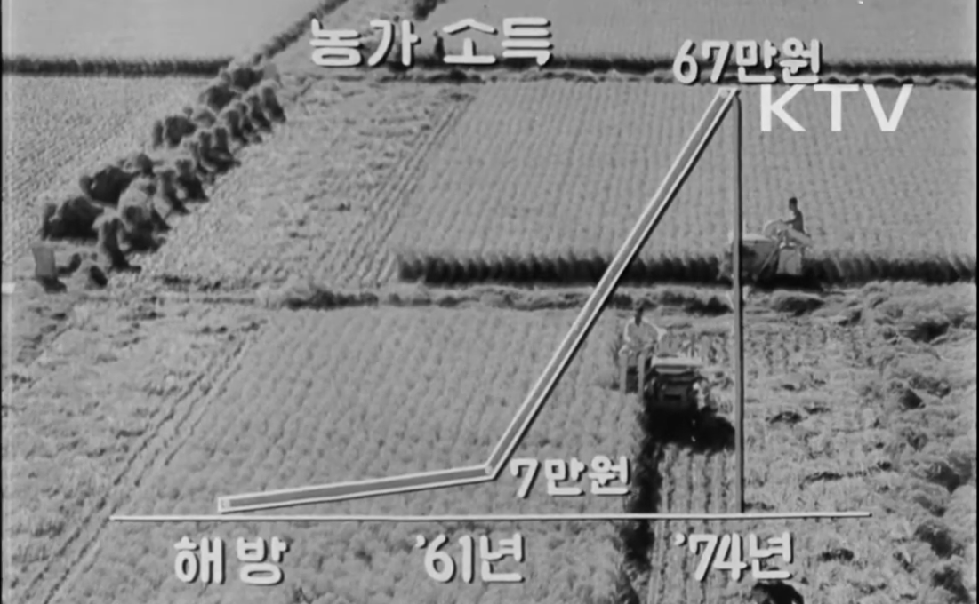 그래서 통계를 들이대며 자신의 주장의 정당성을 말할 때는 그 뒤에 '숨긴 것은 없는지'를 생각해 봐야 합니다. 소년 배틀물같은 예를 들면 주인공이 수련을 통해 10배쯤 강해졌다고 해봅니다. 이것만 따지면 '오~ 멋진데~' 할 법 하지만, 그 뒤에 '적들도 그 사이에 10배 강해졌다'는 말을 붙이면 어쩧게 될까요? 끝내주는 파워 인플레이션이지만 이렇게 되면 전혀 강해진 것이 아니게 되죠. 정부가 발표하는 통계에는 과거에도, 그리고 지금도 이렇게 일부러 숨기는 내용, 그리고 통계가 현실을 보여주지 못하도록 왜곡한 내용이 늘 들어갑니다. 10월 유신했다고 빵빵 자랑하던 썬글라스 박 각하 시절, 그 시절의 통계 사기 사례 하나를 대한뉴스에서 찾아 말씀드립니다.