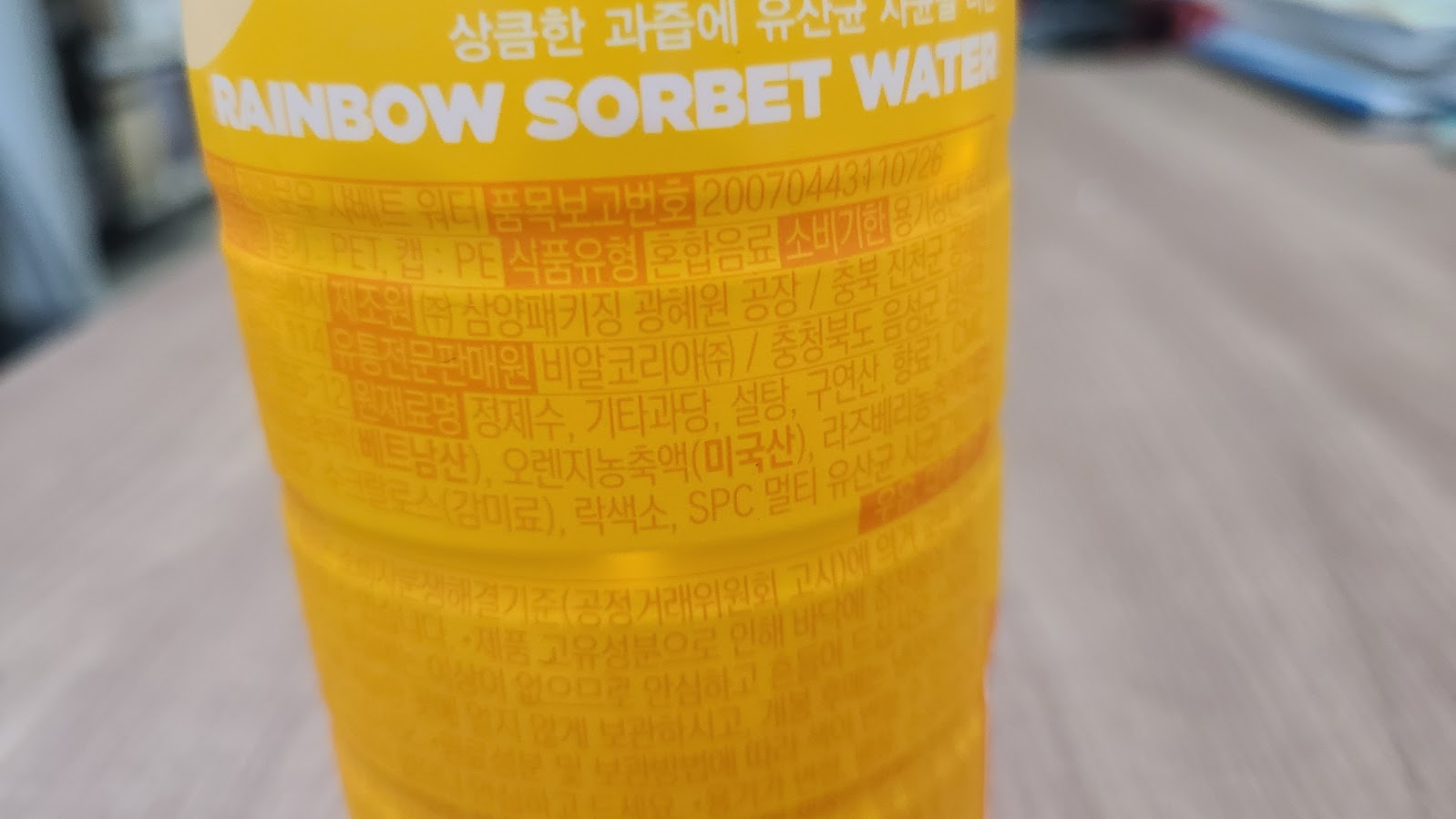 일명 데일리 후르츠 워터 시리즈라고 나온게 이것과 피치 요거트입니다. 사실 피치 요거트는 좋아하지 않으니 나름 선호하는(가장 좋아하는 것은 체리 쥬빌레입니다.^^ 이건 젤리로도 나와 있는데 맛은 보통이지만 향은 죽여줍니다.) 레인보우 샤베트를 골랐습니다. 지금 편의점에 가면 2,500원에 1+1을 합니다. 하나에 2,500원을 내라고 하면 좀 아깝기는 합니다만.