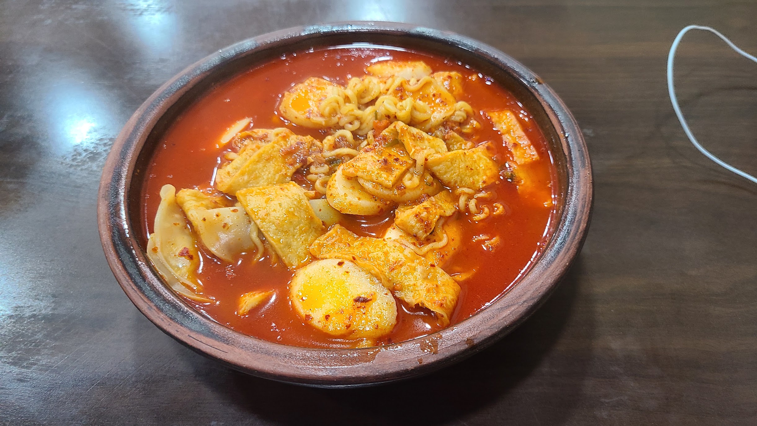 저 메뉴는 세상라면이라는 이름을 갖고 있는데, 그냥 토핑을 다 때려 박았다는 뜻으로 보시면 됩니다. 그렇다고 진짜 다 박은건 아니고 분류하면 '육개장 떡만두 오뎅라면' 정도가 됩니다. 그냥 라면 국물이 아니라 육개장 국물 기반에 저들 재료가 들어갑니다. 육개장 국물이니 국물도 F_ck Fu_k하다는 소리가 나올 수 밖에 없죠. 저대로도 푸짐하지만, 밥 반그릇 정도는 말아 먹어도 좋을 정도입니다.