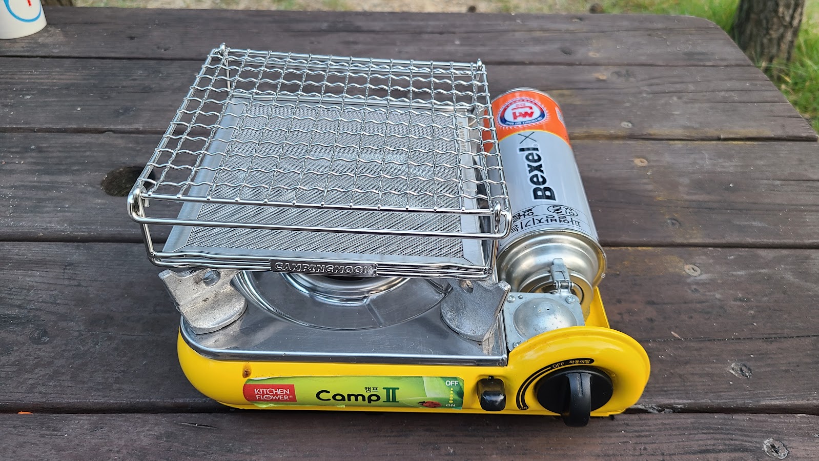 실제로 쓰면 이런 식이 됩니다. 스프레더가 그을리는 것은 어쩔 수 없지만 원래 이러라고 있는 것입니다. 일반 버너로는 스프레더가 시뻘겋게 가열될 정도로 열이 오르지는 않습니다. 또한 불꽃으로 직접 가열이 아니라 일종의 덥혀진 공기로 굽는, 토스터와 기본 원리가 같다보니 하나를 굽는 데 몇 분은 걸립니다.