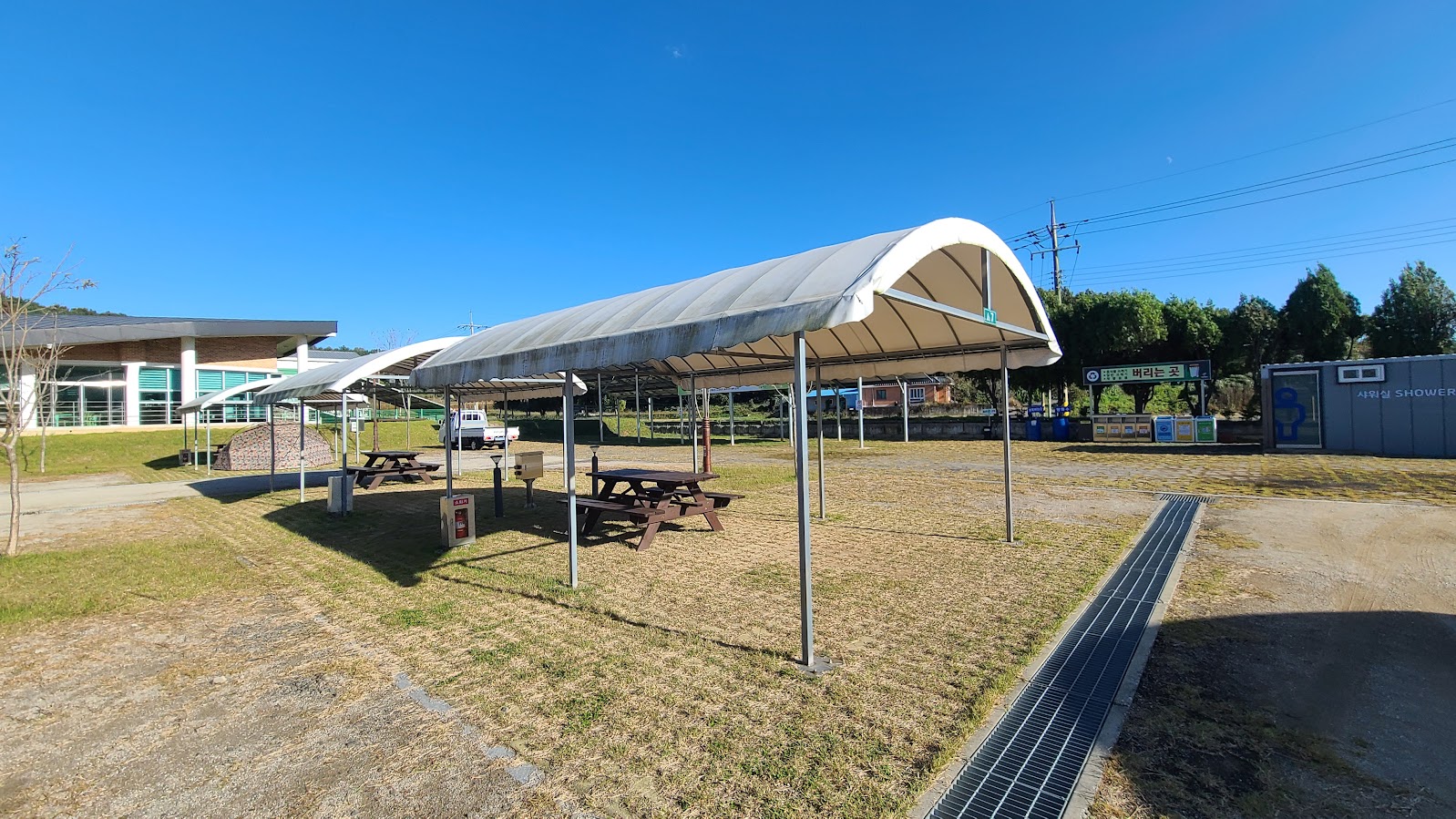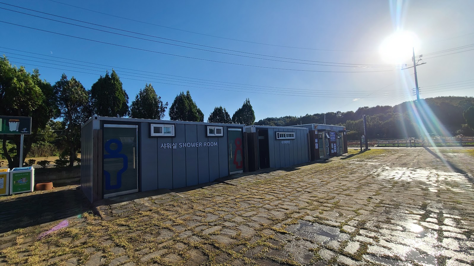 올해 오픈한 최신 캠핑장임에도 편의 시설은 좀 부실(?)합니다. 일단 입구측에 샤워장, 개수대, 화장실이 다 몰려 있지만 컨테이너 가건물 형태입니다. 정말 서천 서울캠핑장의 부속 시설로 부를 수 밖에 없는 심플합니다. 사실 서천 서울캠핑장쪽도 시설이 훨씬 더 나은건 아니지만 일단 여기는 제대로 된 건물입니다.