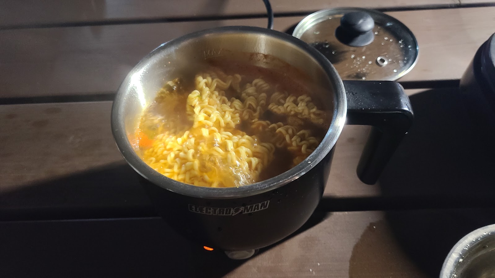 밤이 되었습니다. 낮에는 산에서 산바람이 좀 강하게 불었지만 이 때는 좀 약해졌습니다. 대신 해가 지니 온도가 급격히 떨어져서 쌀쌀합니다. 장비도 없는 솔로 캠핑이지만 그래도 먹어서 몸을 따뜻하게 해줘야죠.