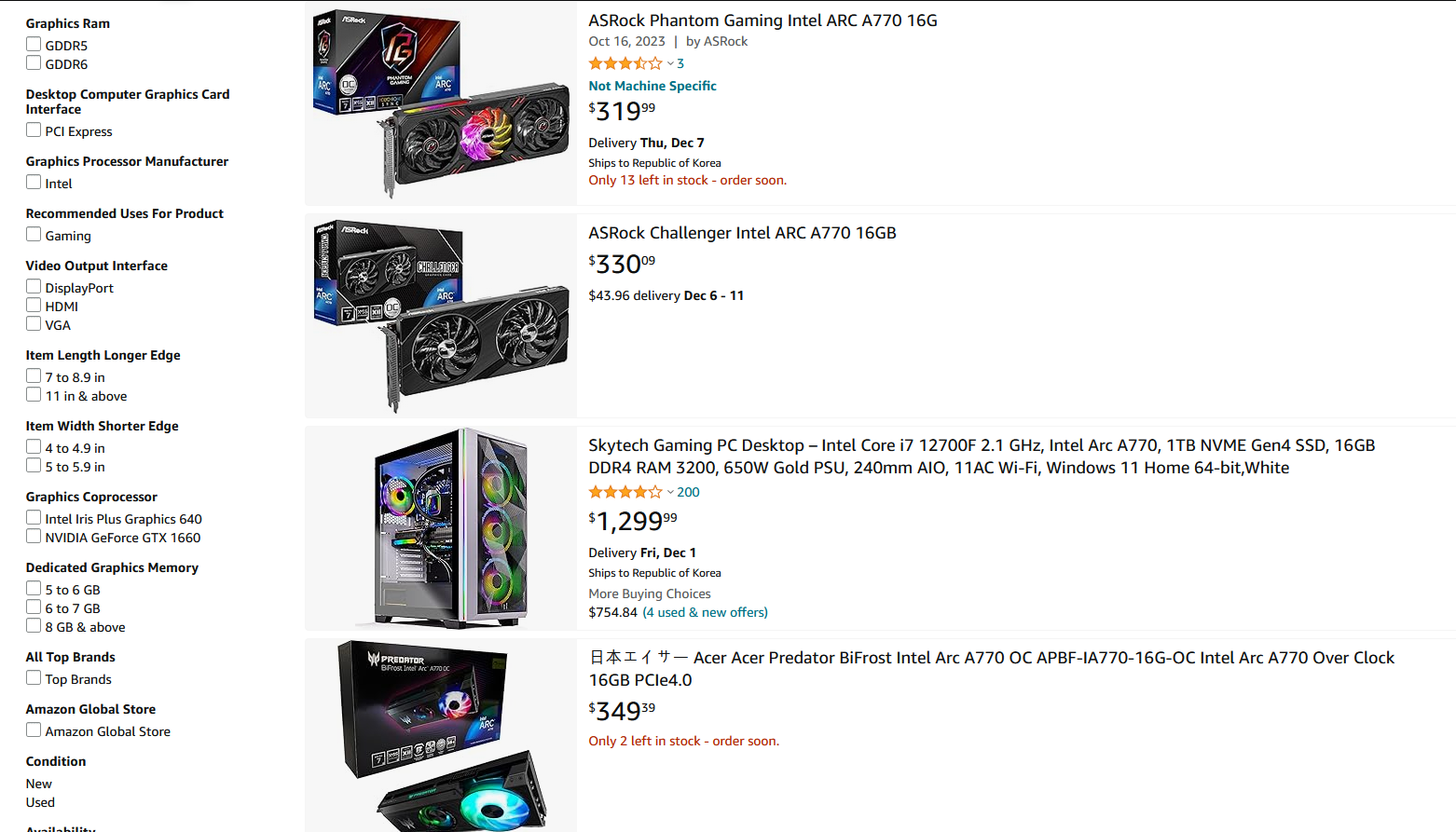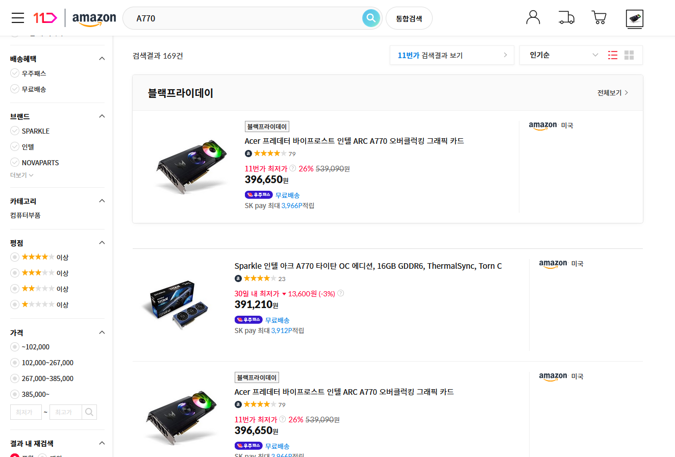 요즘 개인적인 스트레스(?)로 뭔가가 지르고 싶어지는 상황이라, 사면 망한다는 인텔 Arc A770이나 한 번 사볼까 하는 생각이 들어 안 팔리는 물건이라 블랙프라이데이가 되면 좀 싸게 떨어질까 했는데...