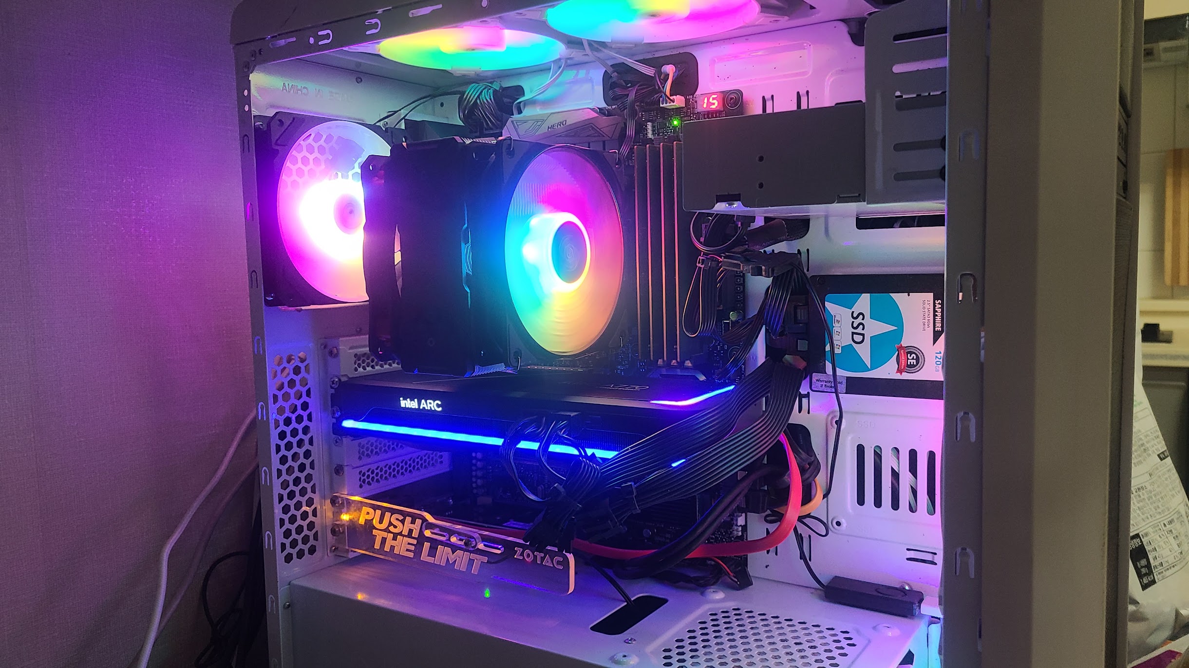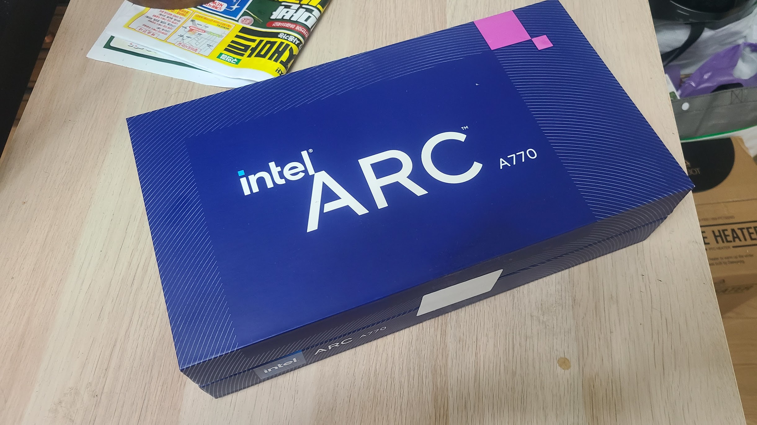 Arc A770 리퍼런스 Limited Edition입니다. 서드파티 모델 대비 OC 모델이며, 그냥 듀얼팬에 RGB LED 바 들어간 그냥 평범(?)한 그래픽카드입니다. 블랙프라이데이 가격이 좋으면 해외에서 들여올 생각이었으나... 가격이 창렬해서 그냥 국내에서 사는 것이 더 쌀 지경이라 그냥 국내에서 조달했습니다.