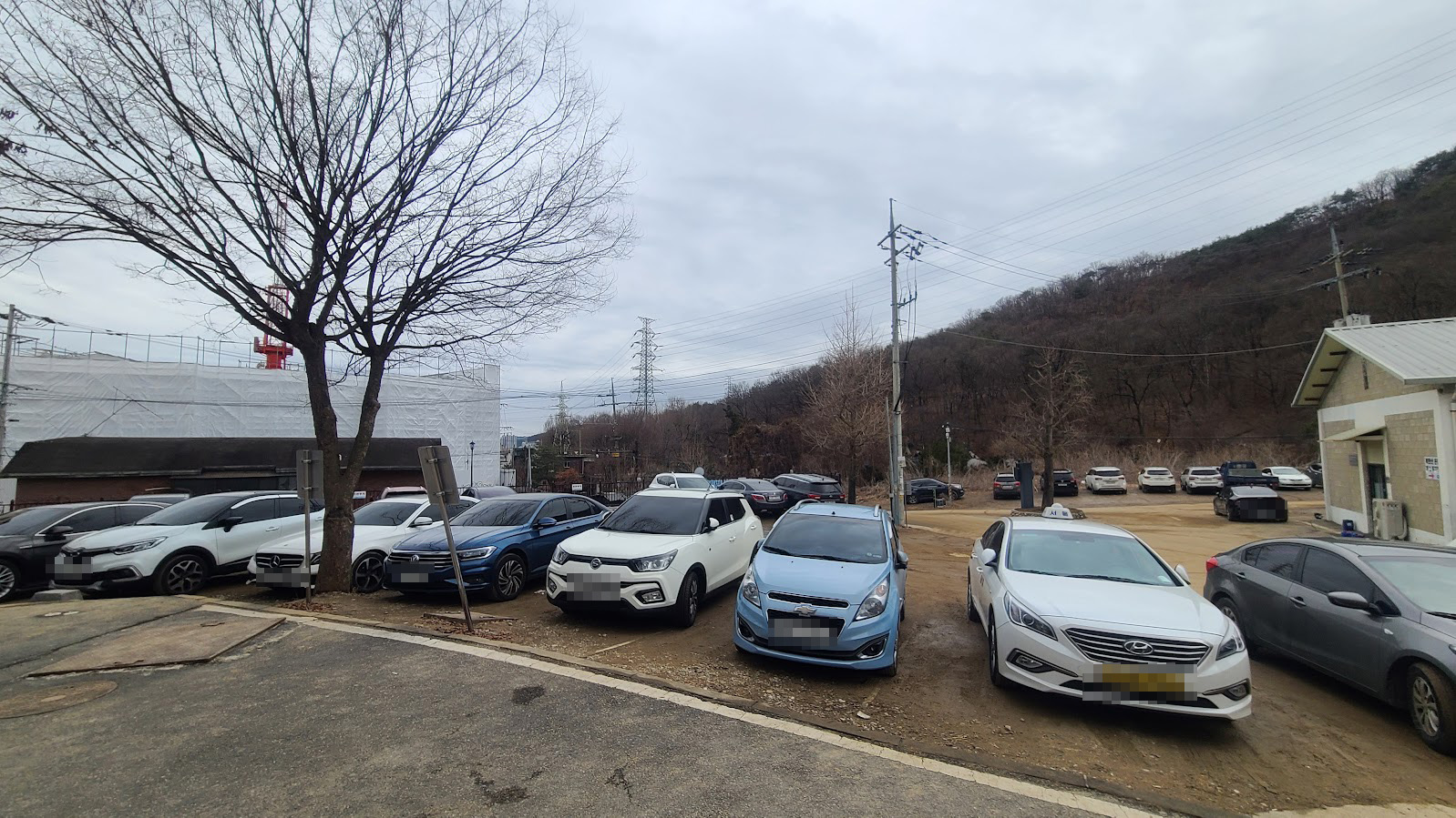 주차 공간에 대해서도 살짝 불만은 나올 수 있습니다. 여기는 전면에도 주차장은 있지만 그 공간이 좁아서 주변 부속 건물 주변에 알아서 주차를 해야 하는 방식입니다. 즉 약간 돌아야 할 수는 있습니다. 또한 포장된 주차장이 아니라서 눈이나 비가 온 직후에는 저 사진처럼 땅히 진흙탕이 됩니다. 흙발로 차를 타야 하니 실내 세차에 민감한 분이면 불만이 있을 수 밖에 없습니다. 그래도 다 합하면 주차 면수는 탕의 크기에 비해서는 넉넉한 편이라서 차를 못 대서 돌릴 일은 없습니다.