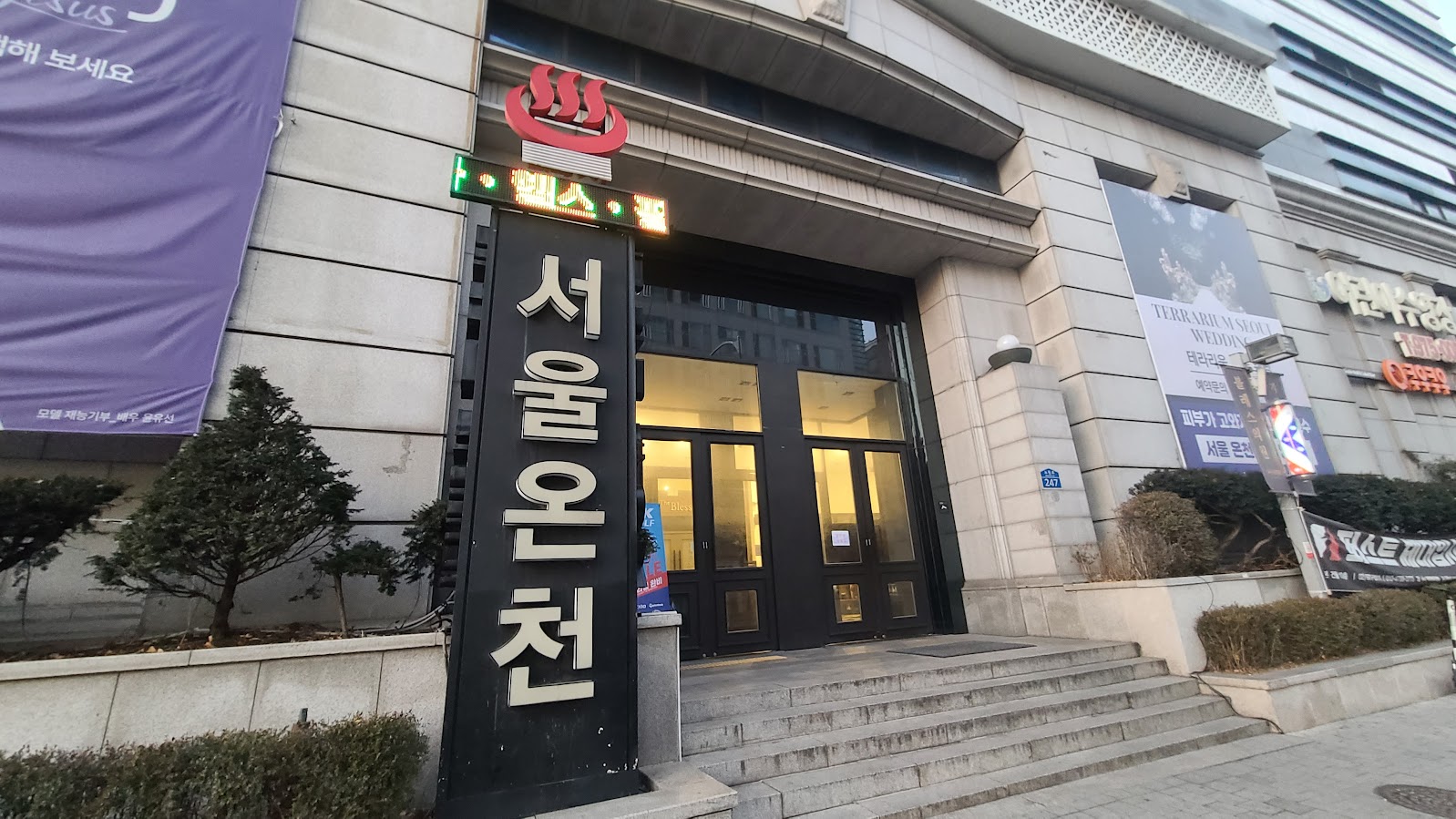 서울시 온천 3대장 가운데 봉일온천이 뜬금없이 시장 위에, 우리유황온천이 아파트 아래에 있다면 서울온천은 빌딩 아래에 있습니다. 저 간판 없으면 '도대체 여기 온천 맞음?!' 소리가 나올 정도로 뜬금없는 위치입니다. 실제 입지를 봐도 뜬금없긴 하는데...