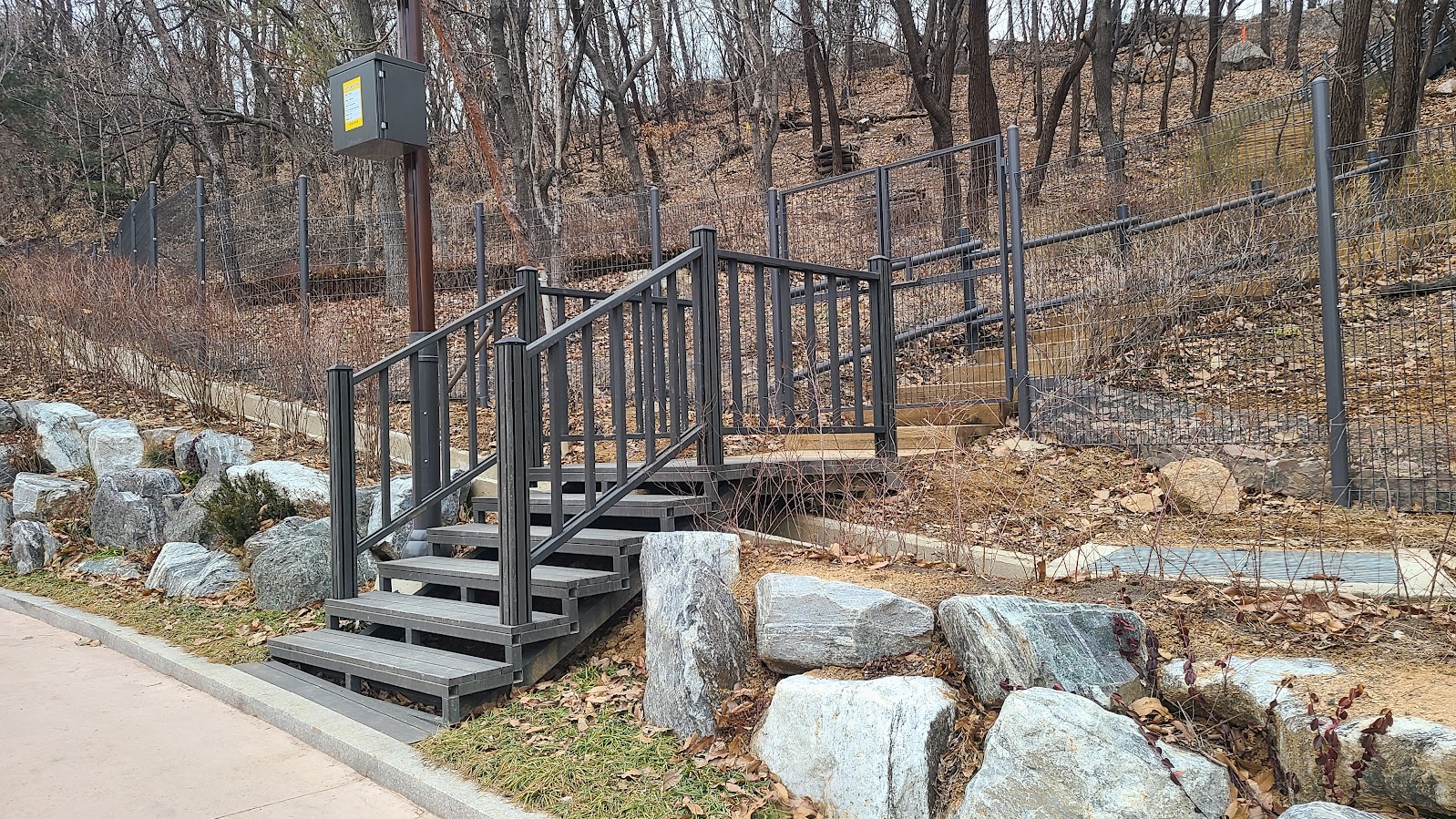 이걸 기억해두셔야 하는 이유가 여기에 있습니다. 사진으로 보셔도 급경사인데 실제로도 급경사입니다. 즉 위로 가면 갈수록 짐을 들고 가기가 힘들어집니다. 아무리 미끄럼 방지 시설을 해놓는다 해도 겨울에는 미끄러질 가능성도 있고, 그게 아니더라도 오르기가 영 힘듭니다. 상대적으로 아래쪽에 있는 곳이 명당일 수 밖에 없습니다.
