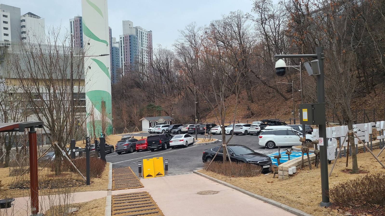 일단 주차장부터. 이 캠핑장은 오토캠핑장은 아니라서 주차장과 영지가 떨어져 있습니다. 언덕 아래 입구에 주차장이 있고 여기에서 영지까지 열심히 짐을 들고 옮겨야 합니다. 주차는 미리 등록을 해 놓아야 하며, 그냥 영지 수에 맞춰서 해 놓은 것이라 여유가 넘치지는 않습니다. 부족한 것도 아닙니다만.