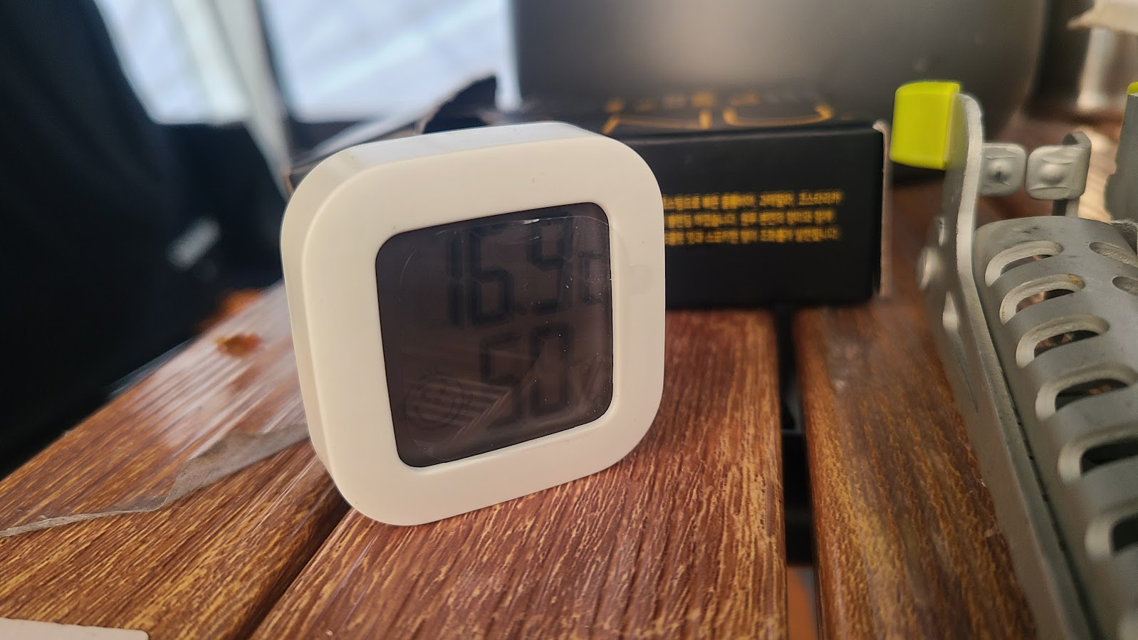 그리고 등장한 작은 아이템... 이번 캠핑을 위해 미니 온습도계를 하나 질렀습니다. 동계나 하계 캠핑에서는 실내 온도가 얼마나 되는지 확인이 잘 안 되는데, 이 확인을 위한 것입니다. 1,500W급 PTC 히터를 큰 텐트에 넣으니 3m급 셸터에 넣을 때 보다는 효과가 떨어지기는 하지만, 그래도 실내 온도를 5도쯤은 가볍게 높여주기에 살만한 수준으로 만들어는 줍니다.
