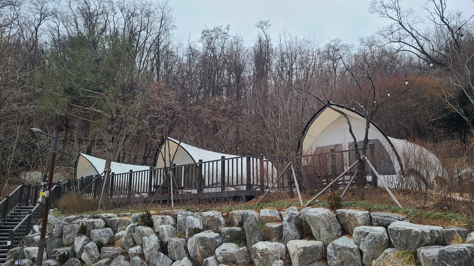 일반 캠핑장 이외에도 글램핑장이 3 사이트가 있습니다만, 동계에는 운영하지 않습니다. 가장 윗쪽에 있어서 아무리 짐이 상대적으로 적은 글램핑이라 하지만 좀 고생을 해야 할 듯 합니다.^^