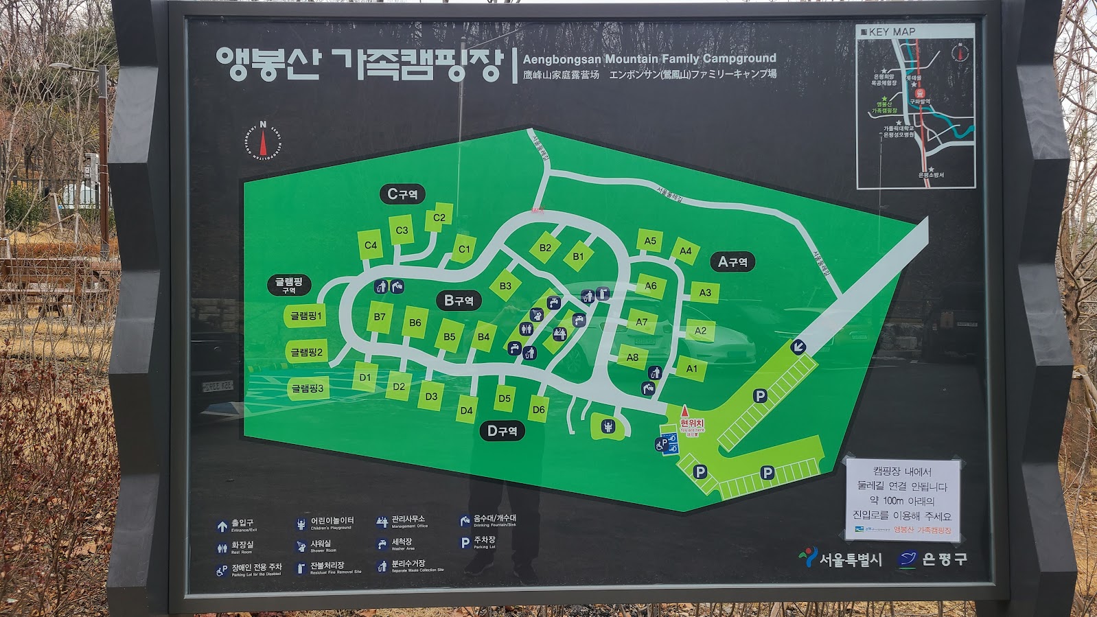 정리해보면... 앵봉산 가족캠핑장은 맑은 공기를 마시러, 주변에 멋진 풍광을 즐기러 갈만한 곳은 아닙니다. 밤에는 병원 간판과 쓰레기 소각장의 굴뚝만 보일 뿐이니까요. 하지만 구파발역 바로 옆이라는 입지는 대중교통만으로 가는 캠핑이라는 가능성을 열어주며 대부분의 캠핑장의 약점인 장보기를 그냥 캠핑장 앞에서 본다는 극단적인 수준으로 개선시키는 효과를 발휘합니다. 언덕에 있어 짐을 나르기 힘든 것은 사실이지만 그것을 보완할 수 있는 시설도 잘 되어 있고 전반적인 시설이 최신이기에 깔끔하고 편안한 캠핑에는 딱 좋습니다. 정말 가족 단위의 캠퍼에게 이상적인 곳입니다. GTX 공사때문에 주변이 있는대로 도로가 막혀 생각보다는 가는 시간이 걸린다는 점 빼고는 말입니다.^^
