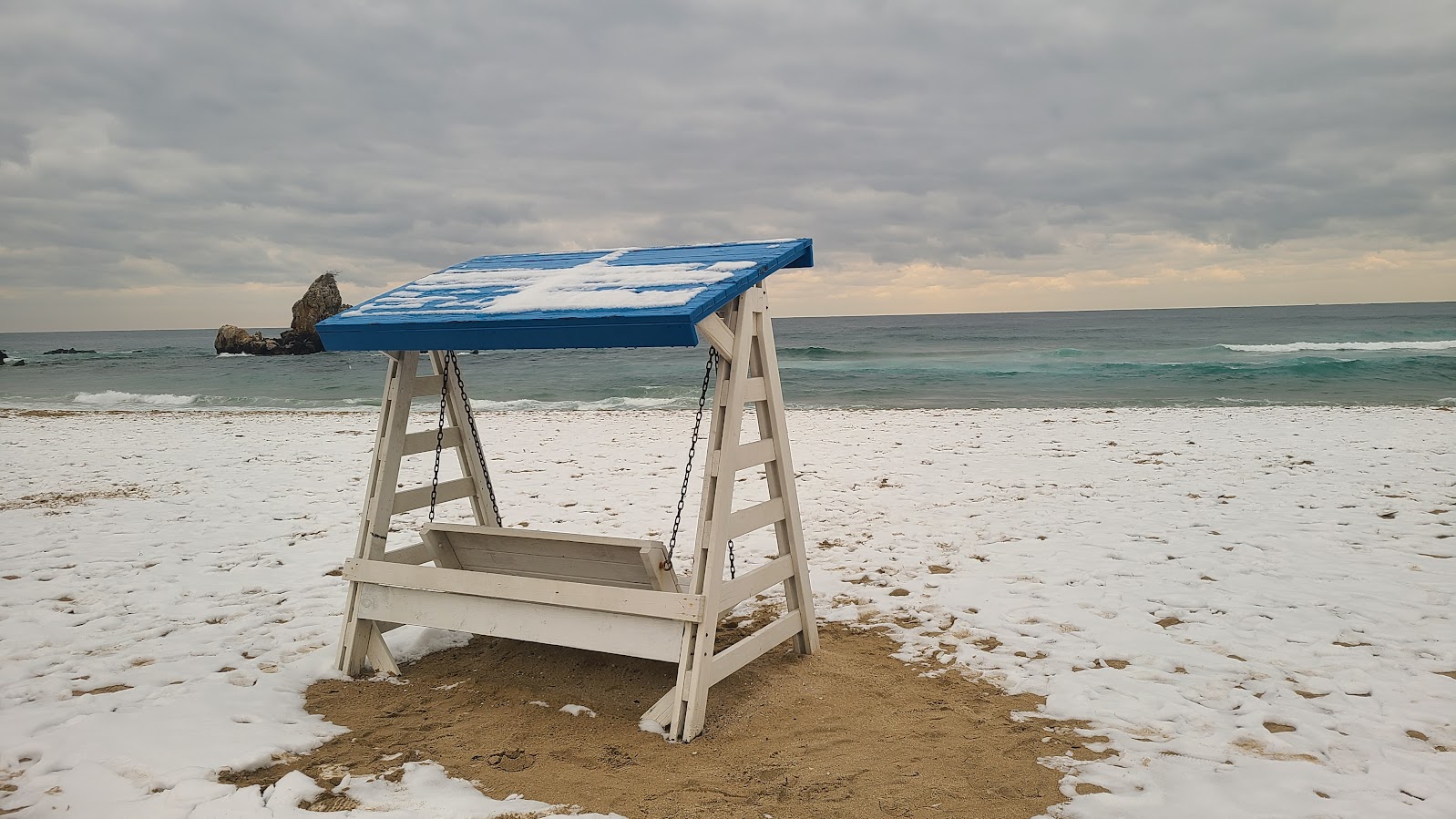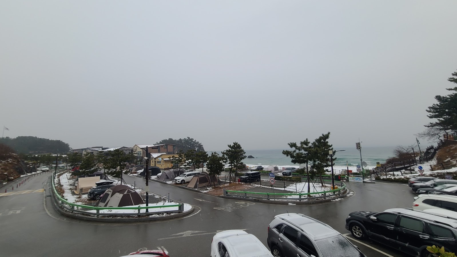 바닷가 캠핑장을 왔으면 바다를 봐야죠. 설국의 바다에는 며칠 지났어도 여전히 눈이 쌓여 있습니다. 겨울 바다를 구경 오는 분들도 상대적으로 적으니 발자국도 적습니다. 물론 한두분 고독을 삼키는 분은 늘 계십니다만.
