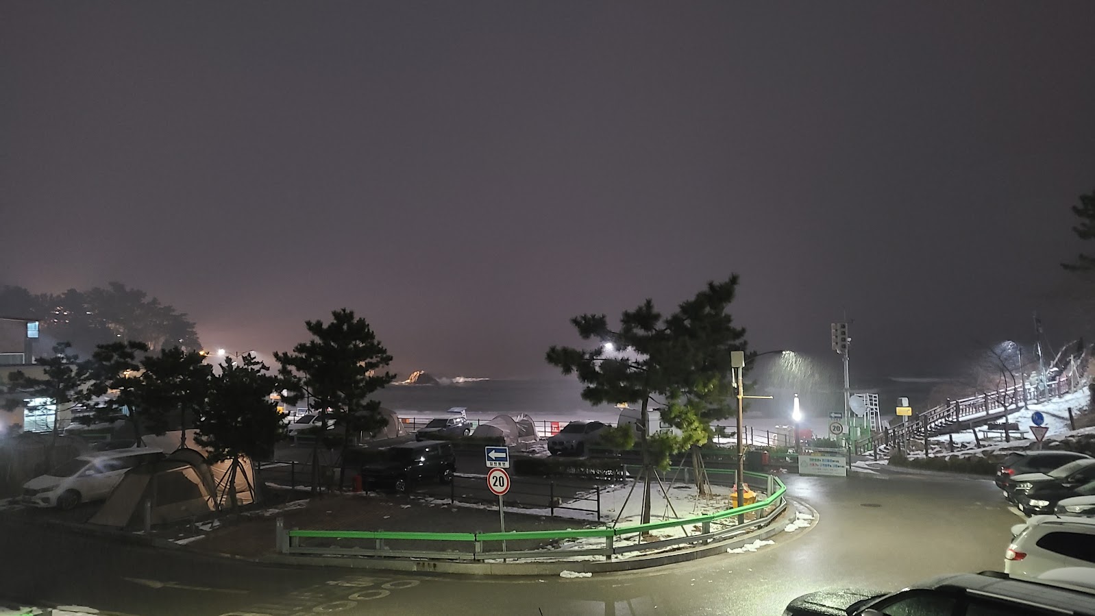 이 눈비는 결국 잘 때 까지 안 그쳤습니다. 자는 도중에서 내렸다 그쳤다를 반복했는데 그렇게 청천벽력과 같은 아침이 밝아오고...