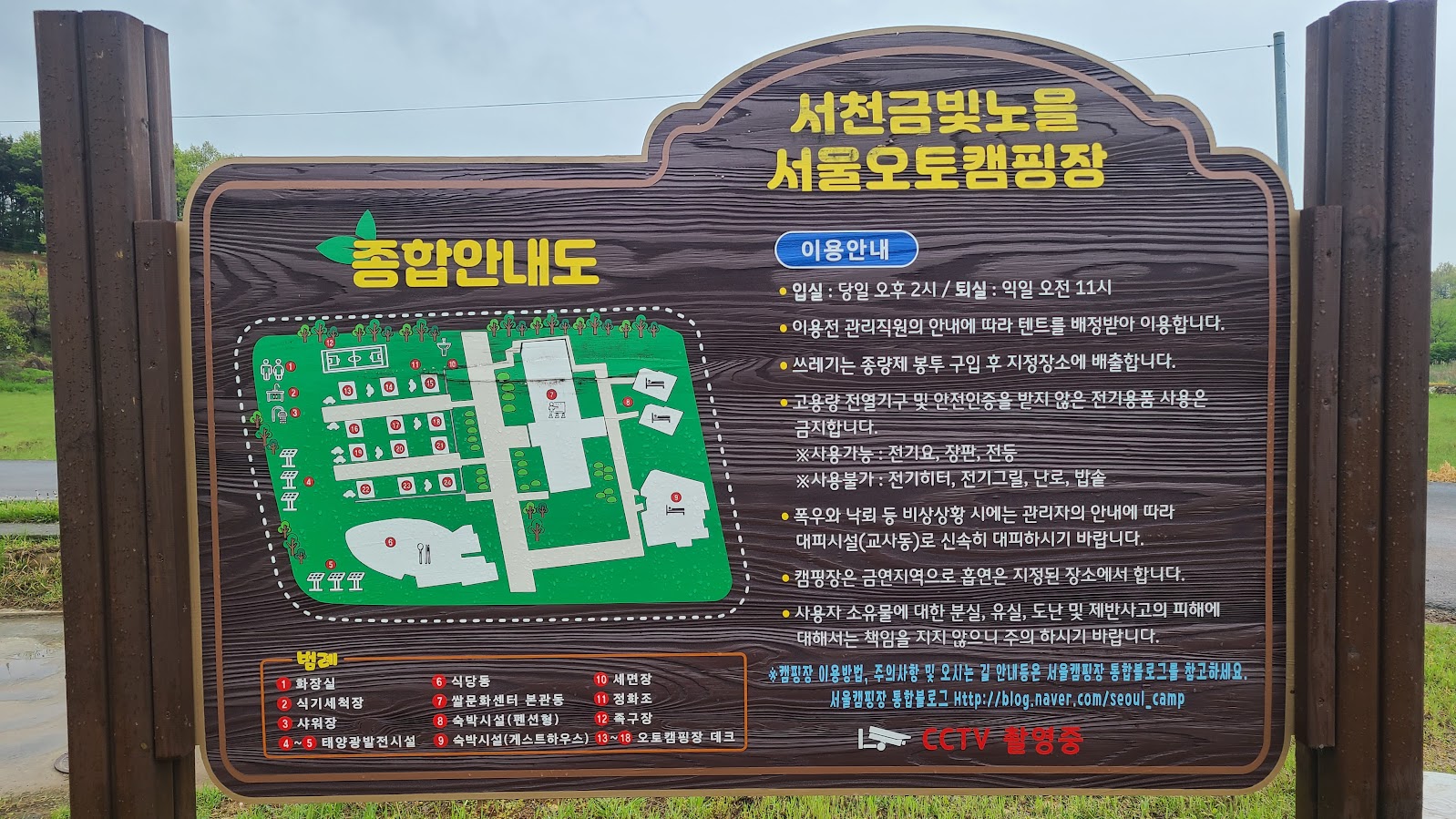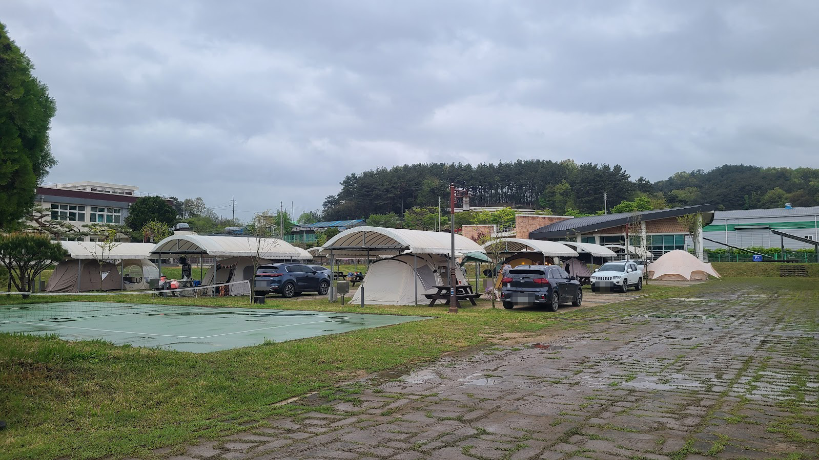 그게 아니라면 아예 그 옆에 있는 '서천금빛노을 서울캠핑장'을 검색하고 오시는게 좋습니다. 사실 이게 더 나은 선택인데, 위 사진 구석에도 간판이 붙어 있지만, 이 캠핑장은 예약할 때 취급은 완전히 별도 캠핑장으로 다루지만, 실상은 서천 서울캠핑장의 부속 시설로 대접합니다. 그래서 체크인 역시 여기로 와서 해야 하기에 어차피 서천 서울캠핑장을 내비에서 찍고 와서 그 옆에 있는 서울오토캠핑장으로 가는 것이 정답입니다. 어차피 두 캠핑장은 옆에 있고(서울오토캠핑장이 서천군 친환경쌀문화센터/귀농학교가 쓰는 폐교의 운동장 자리를 사용하며, 서천 서울캠핑장은 그 옆의 별도의 빈터에 좁게 세워져 있습니다.) 그냥 하나로 취급해도 문제는 안 됩니다. 이걸거면 그냥 예약도 한 번에 받는게 더 낫지 않나 하는 생각도 해봅니다.