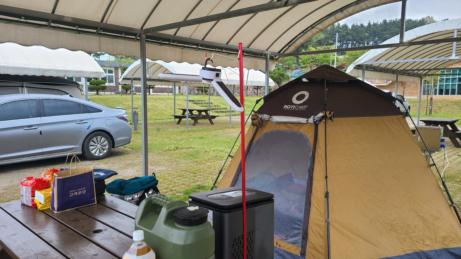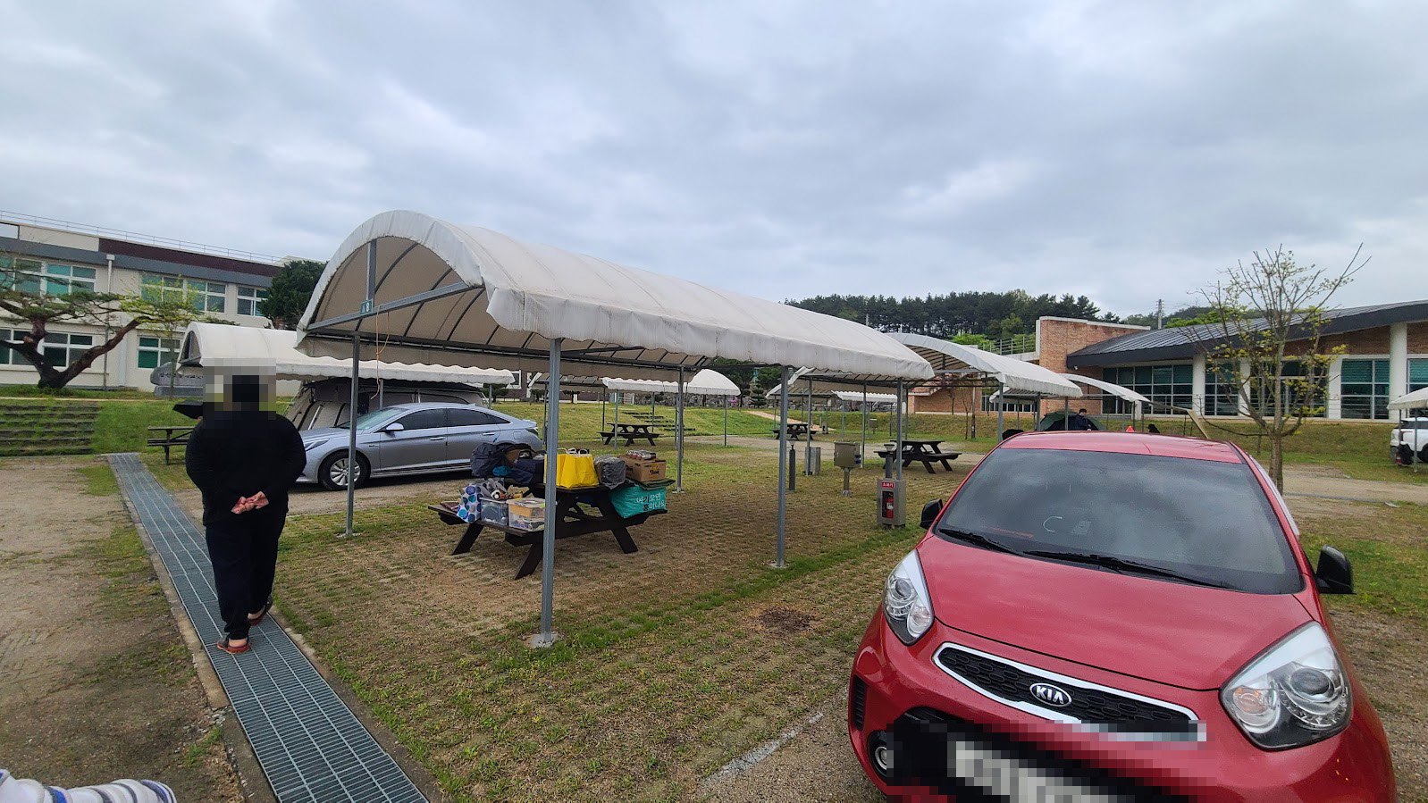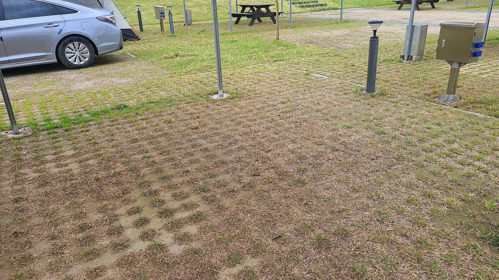 이렇게 캐노피의 보호를 받는 영지지만... 사실 나름 단점이 있습니다. 작년 포스팅에서도 지적한 바 있지만, 콘크리트 블럭 사이에 잔디가 심어진 맨땅이 있는데, 땅이 나름 평평한 것은 좋지만, 텐트를 고정할 팩을 박을 때는 문제가 됩니다. 콘크리트 블럭에 팩을 받을 수는 없으니까요.