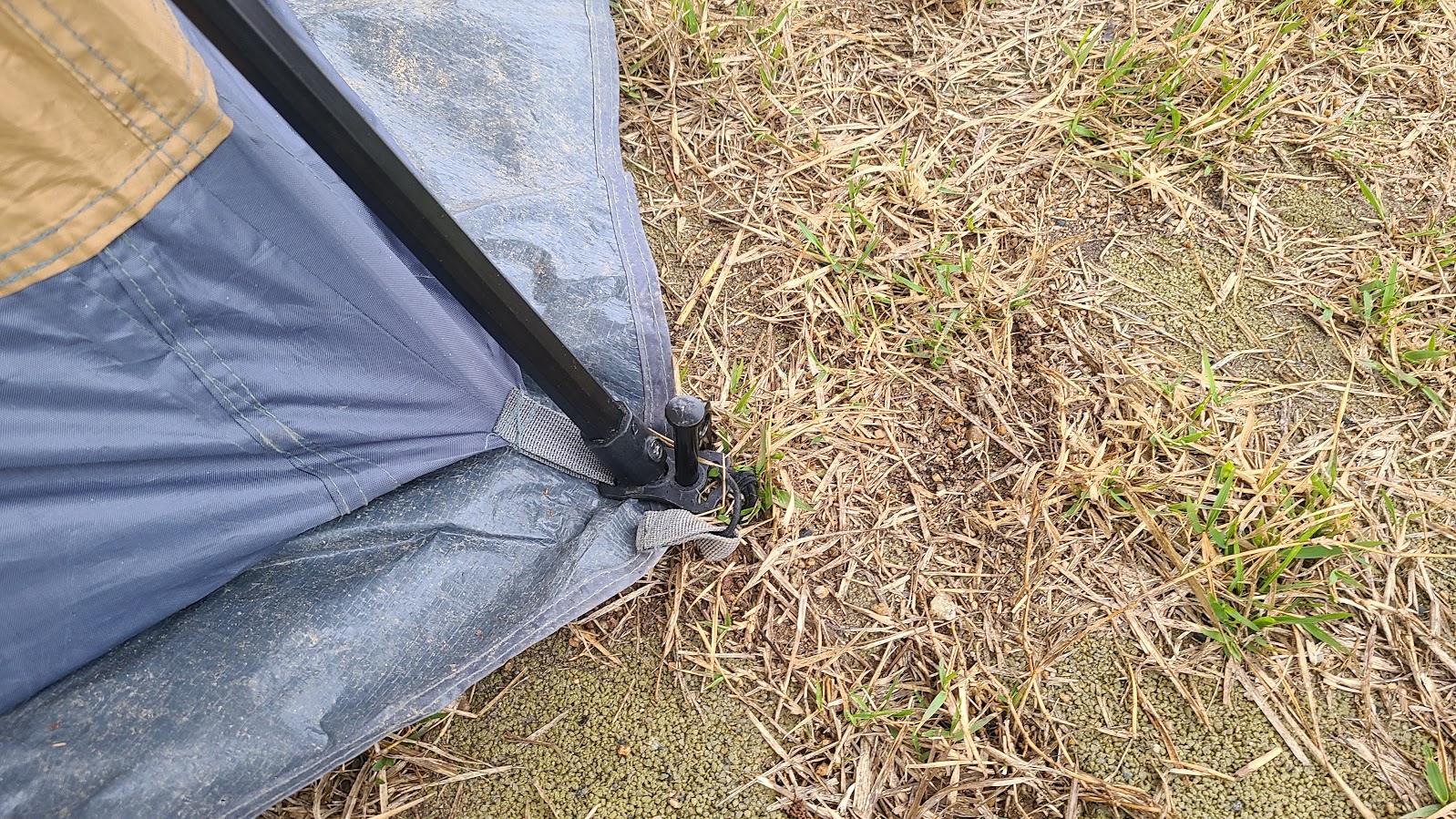 그래서 이처럼 열심히 팩으로 땅을 찔러가며 팩 박을 곳을 찾아야 합니다. 그 결과 딱 원하는 포인트에 팩을 박지 못하는 일도 벌어질 수 있습니다. 심각한 불편은 아니지만 이걸 모르고 가면 당황할 수 있습니다. 팩 역시 가급적이면 물렁한 알루미늄 팩 대신 단조팩을 가져가면 땅을 찔러볼 때 더 편하죠.
