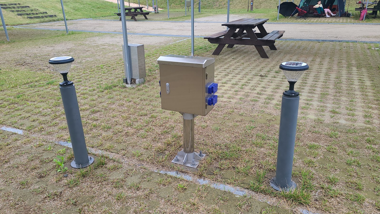 전기는 두 사이트가 하나의 공급함을 공유하는데, 영지 당 두 개의 콘센트를 제공합니다. 이 정도면 남아 돌지는 않더라도 크게 부족하지는 않죠. 대신 여기는 비를 맞는 구역이라서 비가 올 때는 꼭 우산 씌워서 작업을 해야 합니다.^^