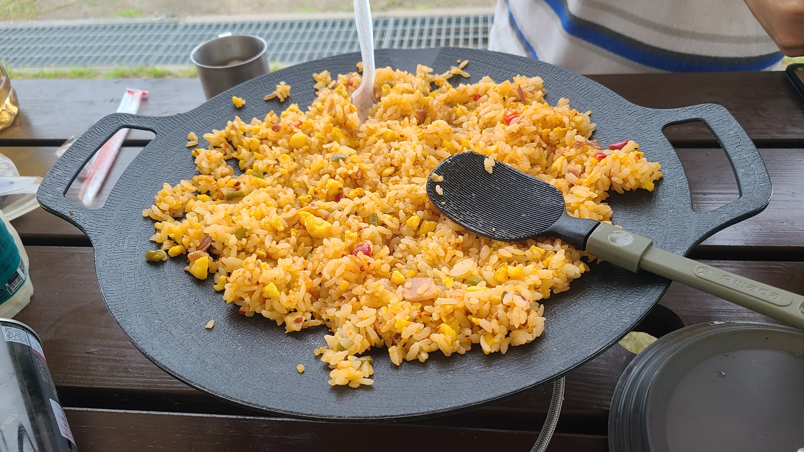 나름 시끄러운 밤(?)을 지나 아침이 되어... 7시부터 밥을 볶습니다. 사실 옆에는 국물용으로 라면도 하나 끓고 있습니다만 주 메뉴는 이거죠. 요즘은 인스턴트 볶음밥이 워낙 잘 나오다보니 캠핑 요리가 더 편합니다. 그냥 대충 쓱쓱 볶기만 해도 그런대로 퀄리티가 나와주고 맛도 다양하죠. 무난한 베이컨 볶음밥에 매운 라면 국물을 들이키고, 후딱 커피까지 마신 뒤 30분 정도만에 철수 준비를 끝내고 9시가 되기 전에 고속도로를 타고 왔습니다. 덕분에 수원 주변에서만 살짝 정체를 겪을 뿐 그 전까지는 편하게 올 수 있었죠.