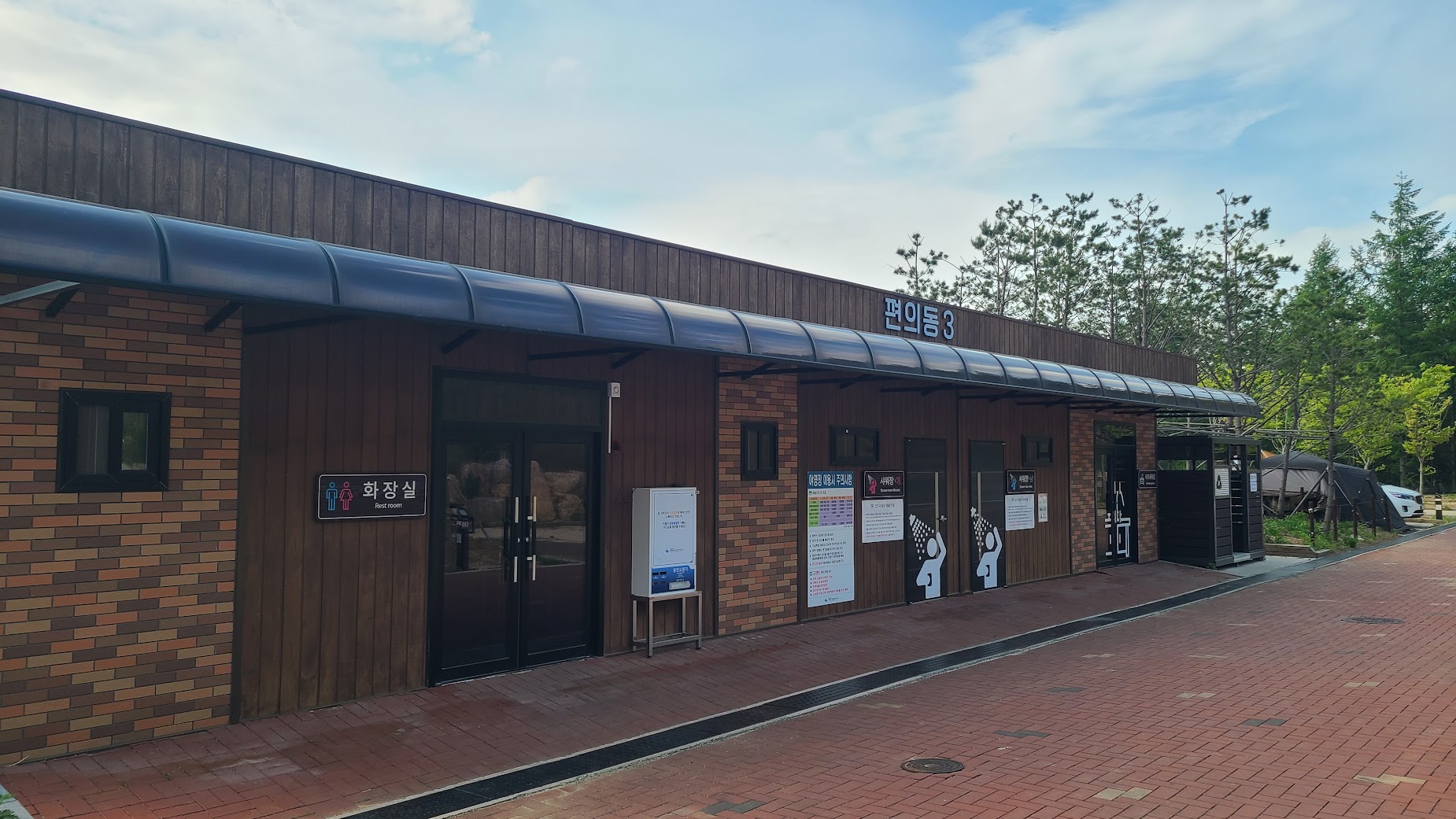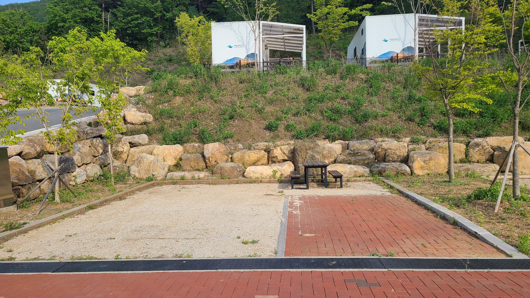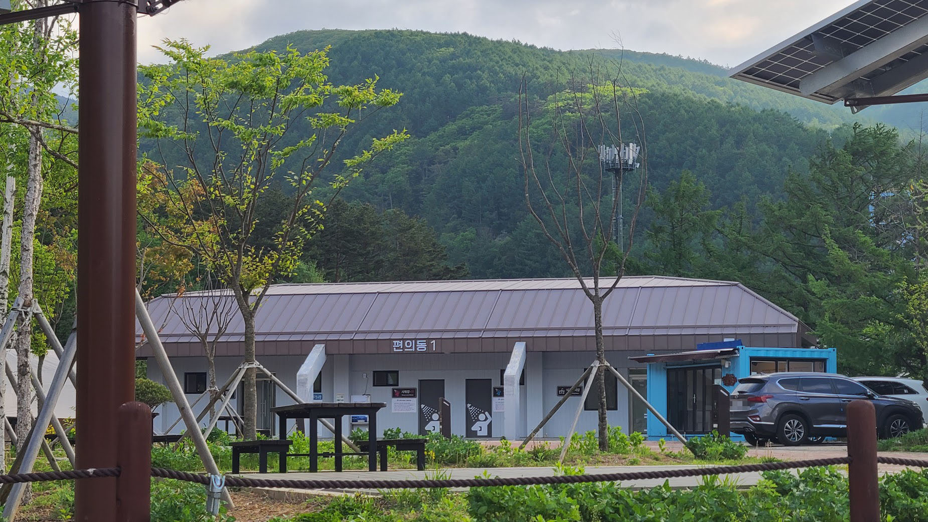 이런 계단식 캠핑장의 문제는 개수대나 화장실같은 필수 시설이 한 곳에 몰릴 경우 정말 불편해진다는 점인데, 나름 최신 캠핑장은 소도캠핑장은 이 걱정은 일단 적습니다. 1.5층 위치, 그리고 2층과 3층에 화장실/개수대/샤워장 및 쓰레기장을 각각 두어 조금만 가도 이런 시설을 쉽게 이용할 수 있습니다. 1.5층의 카라반 분들만 조금 귀찮은 정도죠.