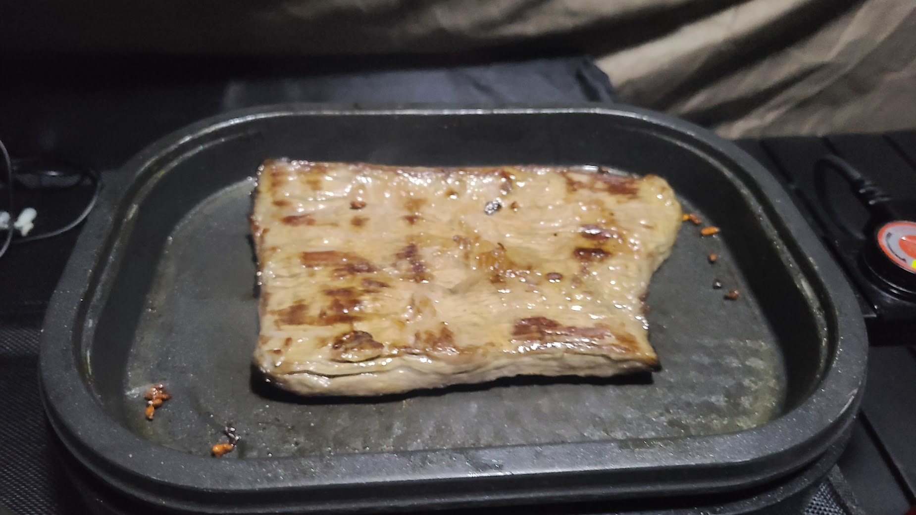 불안한 마음을 숨기며 고기를 지글지글... 나름 한우 양지입니다. 양지는 국거리지만 부위에 따라서는 저렇게 구워먹을 수도 있죠. 그렇지만 바람이 점차 강해지다보니 밥도 먹는건지 마는건지 그런 기분입니다. 결국...