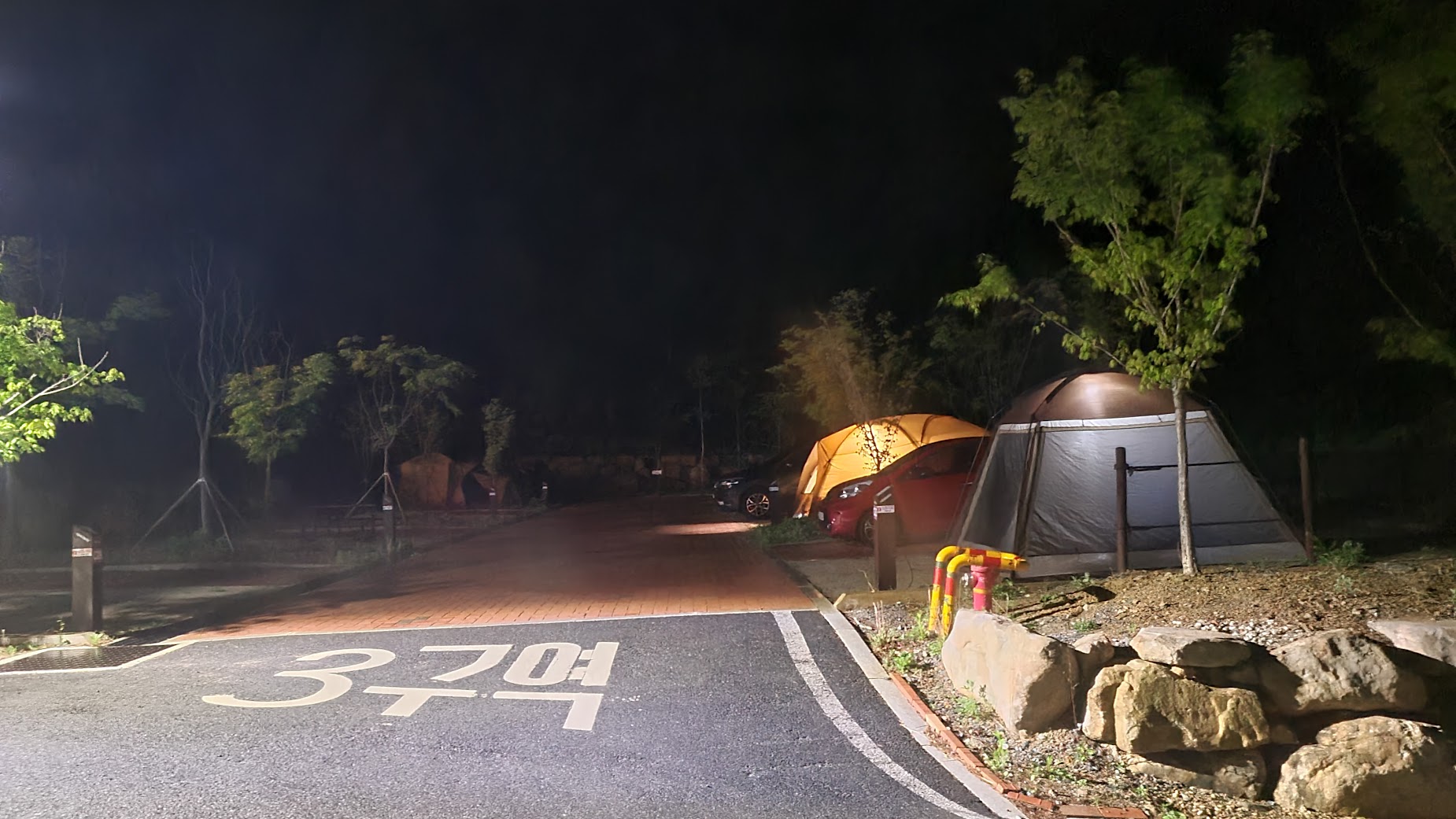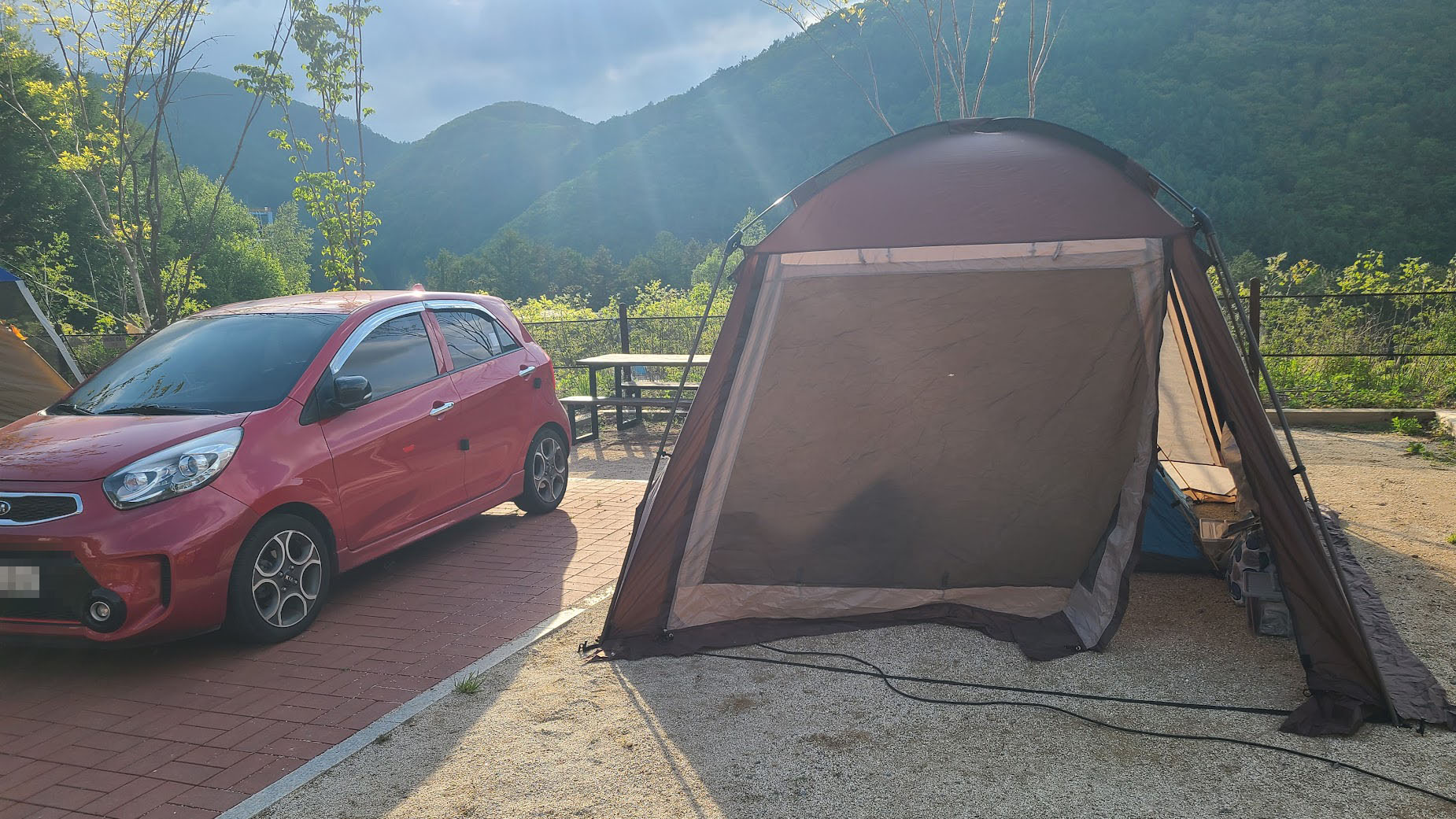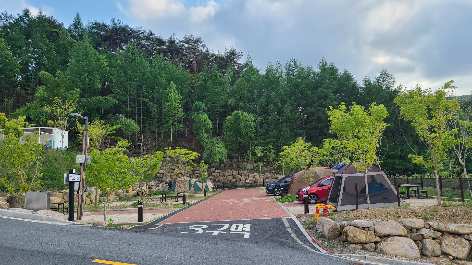 그리고 영지. 사실 이건 이전 포스팅에서도 죽어라 적었지만 주차 공간과 캠핑 사이트가 완전히 일체화된 오토캠핑 기본인 캠핑장입니다. 다만 영지가 데크나 쇄석이 아닌 마사토라 물빠짐이 좀 좋지는 않은게 흠인데, 최신 캠핑장답게 평탄화는 잘 되어 있어서 물고임이 심하지는 않습니다만, 여기는 날씨가 변덕스럽기로는 유니버스한 레벨인 태백산입니다. 아무래도 아쉽다면 아쉬운 문제입니다.