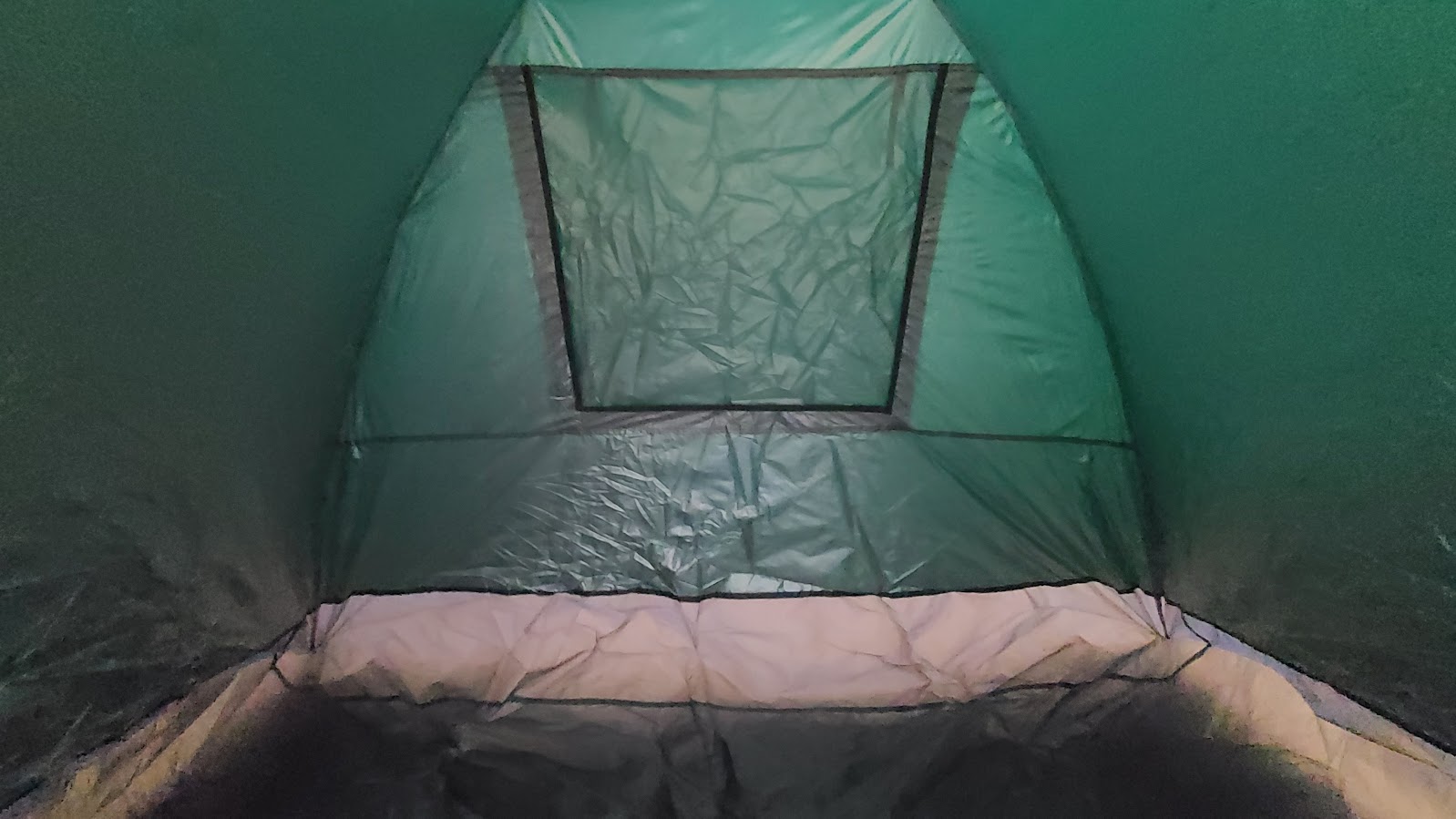 텐트를 펴면 이렇게 됩니다. 사실 이전 버전 2 텐트와 다를 바 없어 보이는데, 구조는 비슷하기 때문입니다. 다만 입구 앞에 있던 비막이가 없어서 실제 차지하는 공간이 좀 더 적고, 오토텐트 폴이 너무 높게 올라오지 않아서 그나마 텐트같은 위엄을 유지해줍니다.