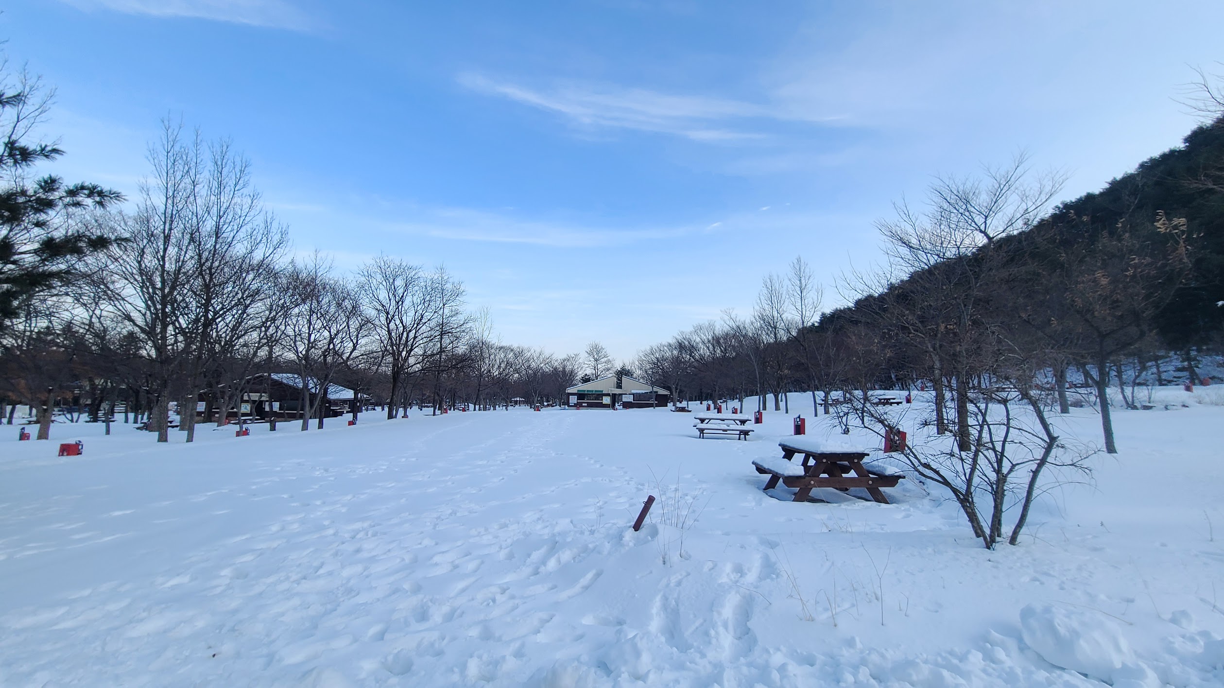아... 보기만 해도 시원한 눈밭입니다. 설악동 캠핑장은 자체 크기도 꽤 크지만, 겨울에는 거의 대부분이 폐쇄 상태라 이런 풍경을 연출합니다. 제 입장에서는 짜증 한 가득이었는데, 텐트의 주요 자재가 없어 텐트 한 번 못 치고 집에 왔어야 했기 때문입니다.T_T