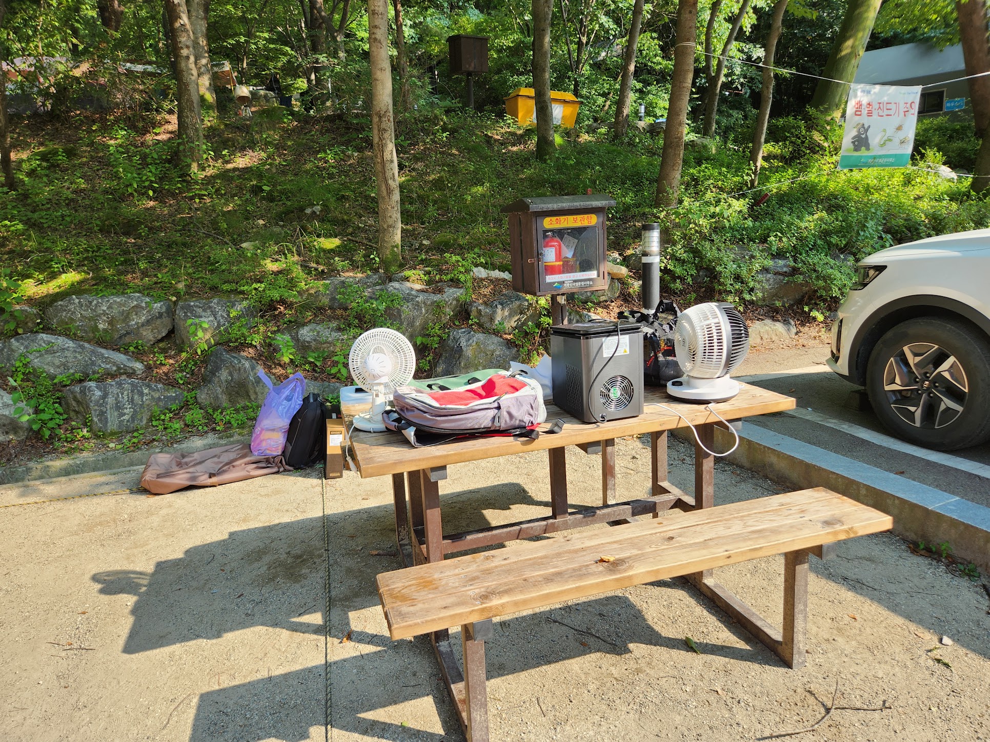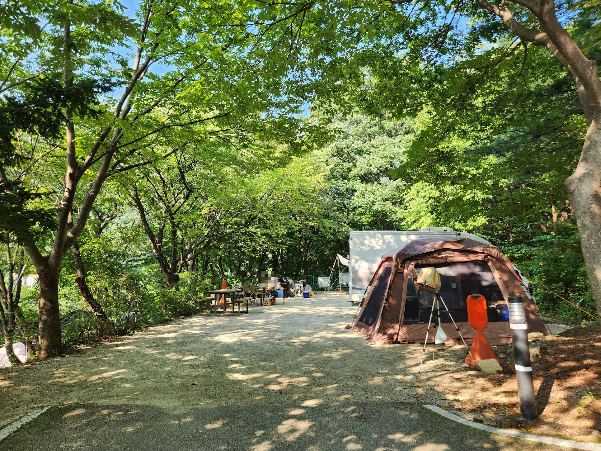 이렇게 즐겁게 돌아왔으나... 여전히 세상은 뜨겁습니다. 차 밖으로 나오기가 싫어지는 그런 레벨입니다. 아, 이전에 동학사 포스팅에서 적었지만 여기는 오토캠핑장이 아니라서 저기 사진처럼 캠핑카를 갖고 오는건 원래는 규정 위반입니다. 딱히 뭐라 하는 것은 아니지만 일단 주변에 민폐를 끼칠 가능성이 있다는 점은 좀 생각을 하셔야 합니다.