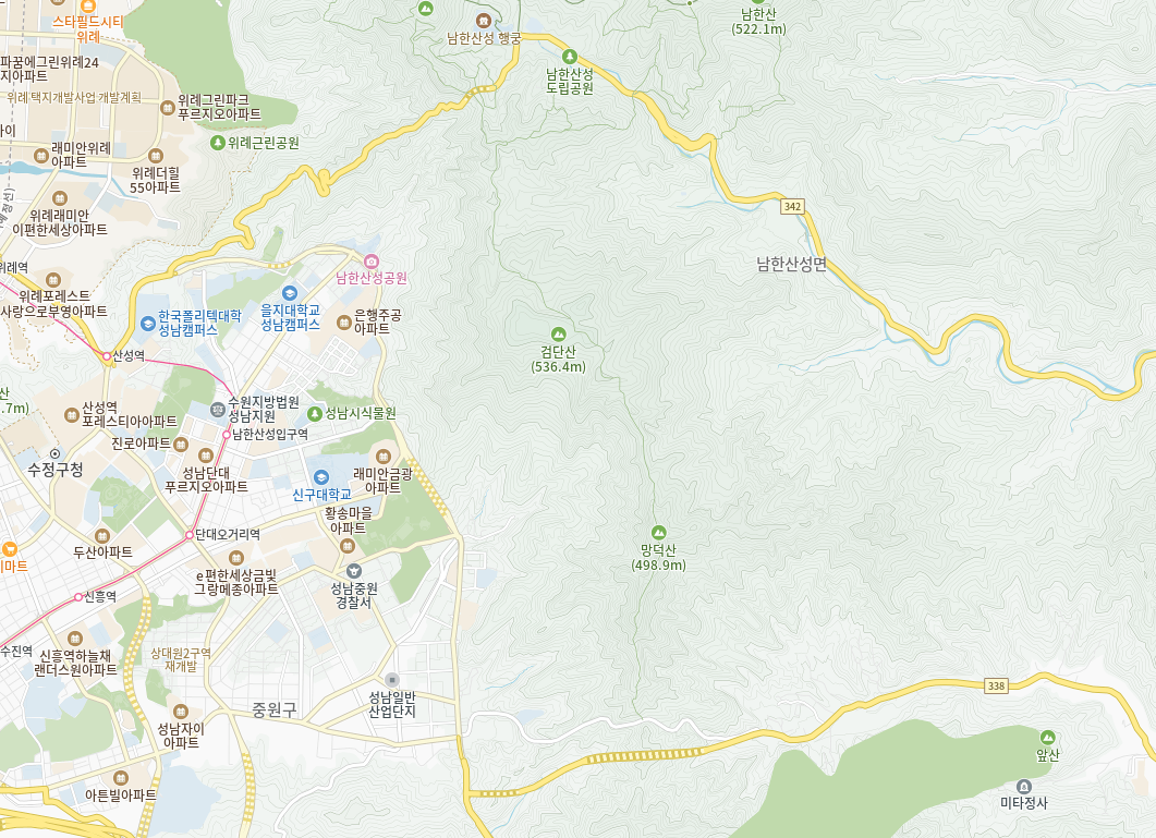 원래 성남은 구 성남으로 부르는 수정구, 중원구 지역이 그 시작입니다. 하지만 지도를 잠시 펼쳐 수정구와 중원구의 오른쪽을 잘 봐 주십시오.