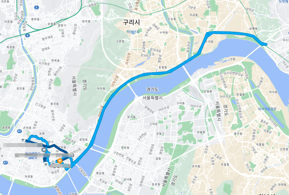이 날은 아침에 강을 보고 커피를 마시러 덕소까지 갔다 다방이 열지 않아 눈물을 흘리고 돌아와 아침에 귀성했다 어린이대공원을 산책하고 열심히 걸어서 돌아온 경로입니다.