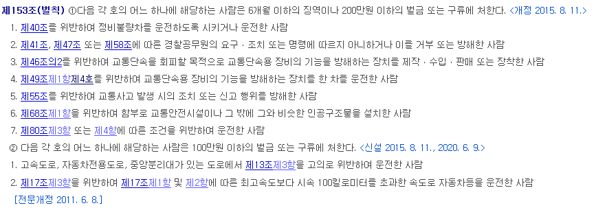 상식의 레벨을 무시해서 벌이는 것이 역주행이니 더 이상 양심에 손을 대보라 하는 것은 무의미하고 법의 매운 맛으로 브레이크를 걸어야 합니다. 그런데 역주행을 하면 어떻게 되는지 아는 분이 얼마나 될까요? 기껏해야 과태료 몇 만원 나온다 생각하셨다면 그게 아닙니다. 보통 범칙금 6만원으로 나와 있는건 어디까지나 일반 도로의 이야기고, 고속도로는 저기 조항에 나와 있듯이 100만원 이하 '벌금'입니다. 즉 바로 전과가 남습니다.