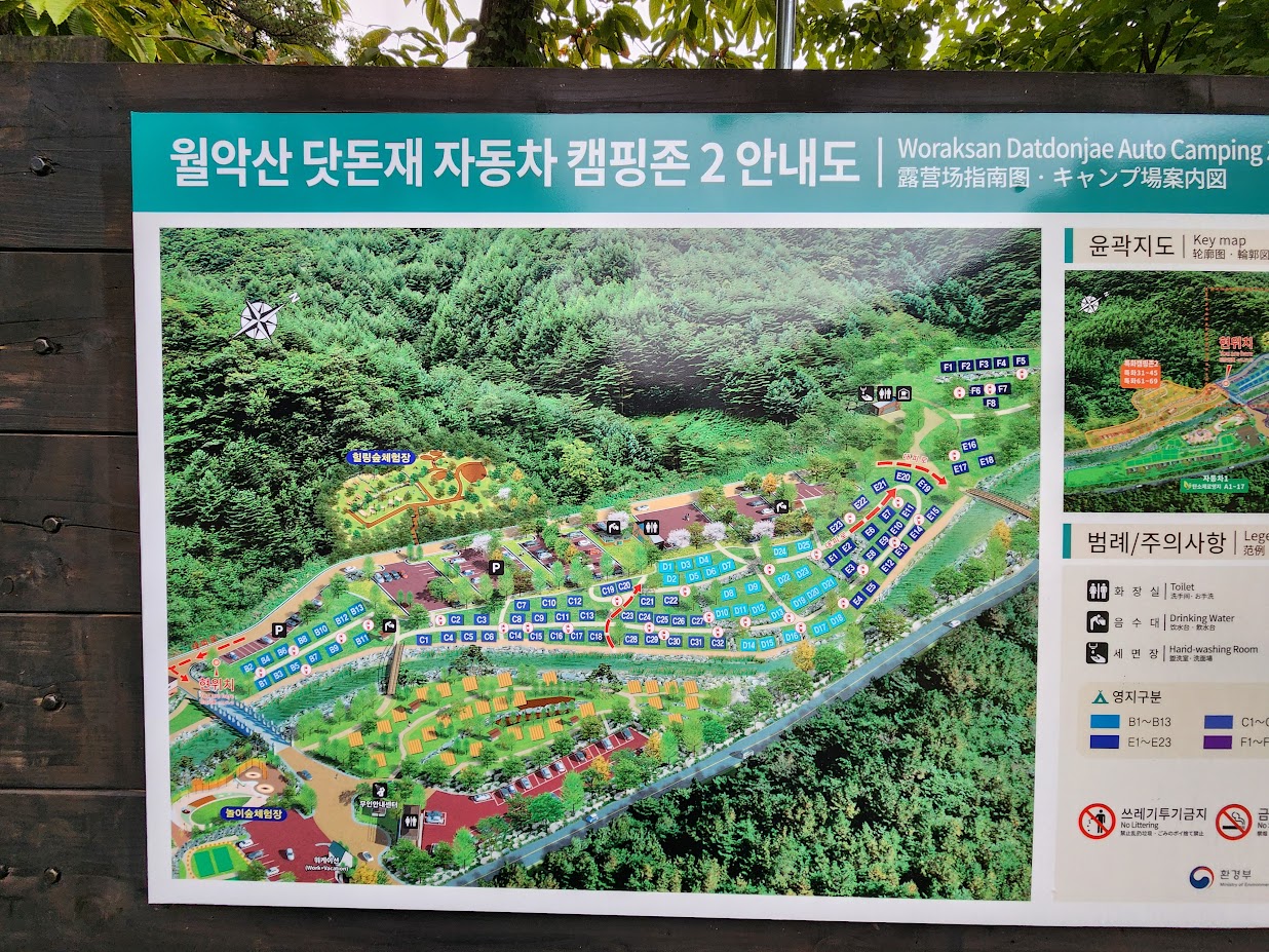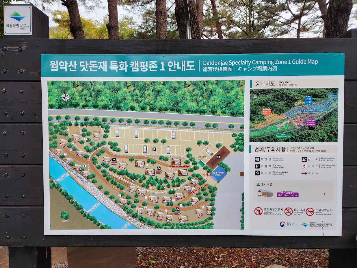 이번 캠핑은 하우스지만 일단 나머지 영지들과 전체 시설부터 먼저 좀 소개해봅니다. 이 캠핑장, 위의 제원표(?)에서 나온 바와 같이 규모면에서는 설악동이나 몽산포급으로 큽니다. 괜히 월악산의 플래그쉽이라고 표현한게 아닙니다.