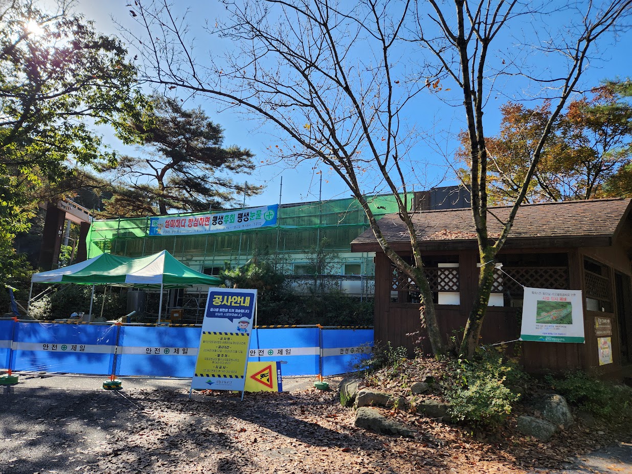하지만 지금은 그 상황도 더욱 끔찍합니다. 자동차 1캠핑존, 특화 1캠핑존은 위 사진의 입구에 있는 화장실을 공유하는데, 그 화장실이 올해 중순부터 내년 늦봄까지 리뉴얼 공사를 진행중입니다. 이 때 까지는 이 커다란 캠핑장에 화장실이 두 개만 있는 셈입니다. 저 화장실의 리뉴얼이 끝나더라도 캠핑장 전체 영지 수 대비 화장실 자체가 전반적으로 부족한건 사실이라 구석 영지에서는 화장실 가는 것도 꽤나 불편한 것은 피할 수 없습니다. 올해 이 캠핑장을 방문하실 분이면 이 부분은 꼭 기억해 두셔야 합니다.