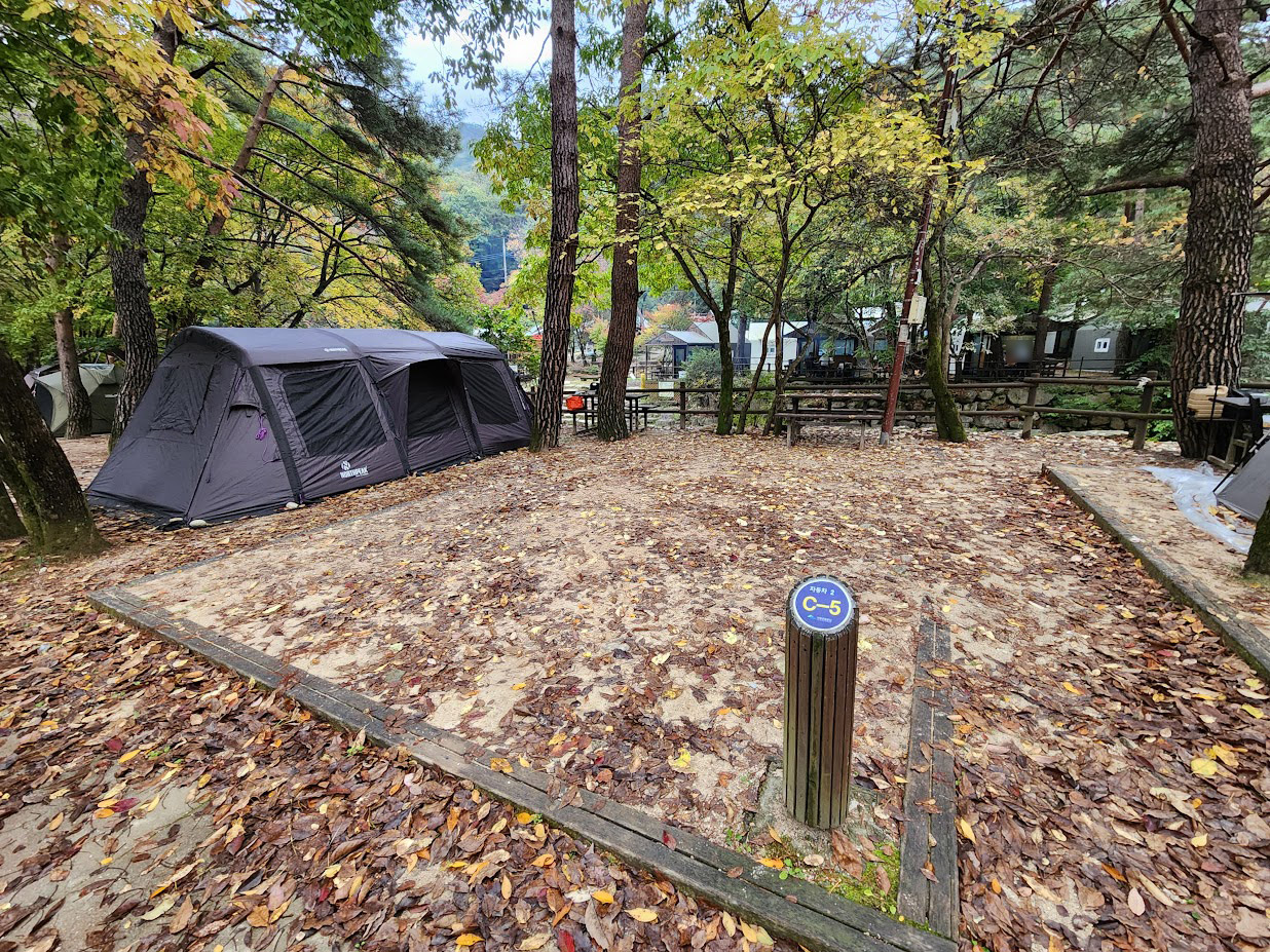 이 캠핑장의 가장 안쪽에는 이런 영지가 있습니다. 정말 리얼 숲속 캠핑을 느낄 수 있는 나름 명당 자리인데, 대신 주차장에서도 멀고 물 쓰기도 멀며 화장실도 멀다는 3대 고충을 겪어야 합니다.