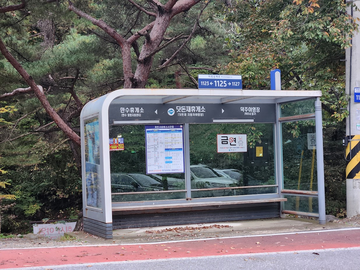 마지막으로... 대중교통으로 캠핑하기 이야기입니다. 위에 적은 자동차 2캠핑존 구석 다리를 건너면 버스정류장이 나옵니다. 여기에서 제천 버스 983/984를 탈 수 있습니다. 하지만...